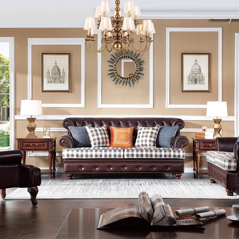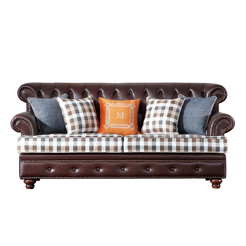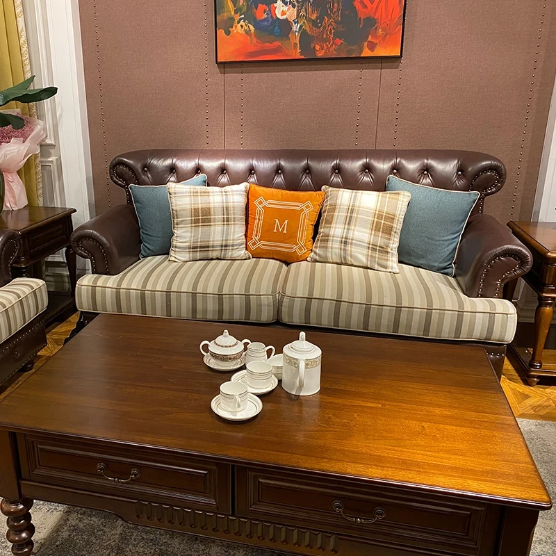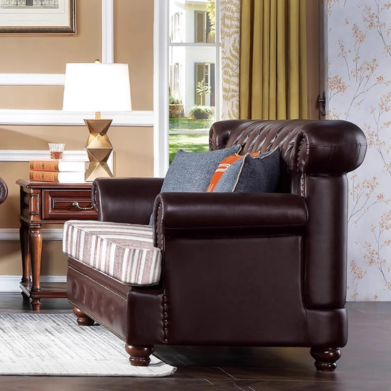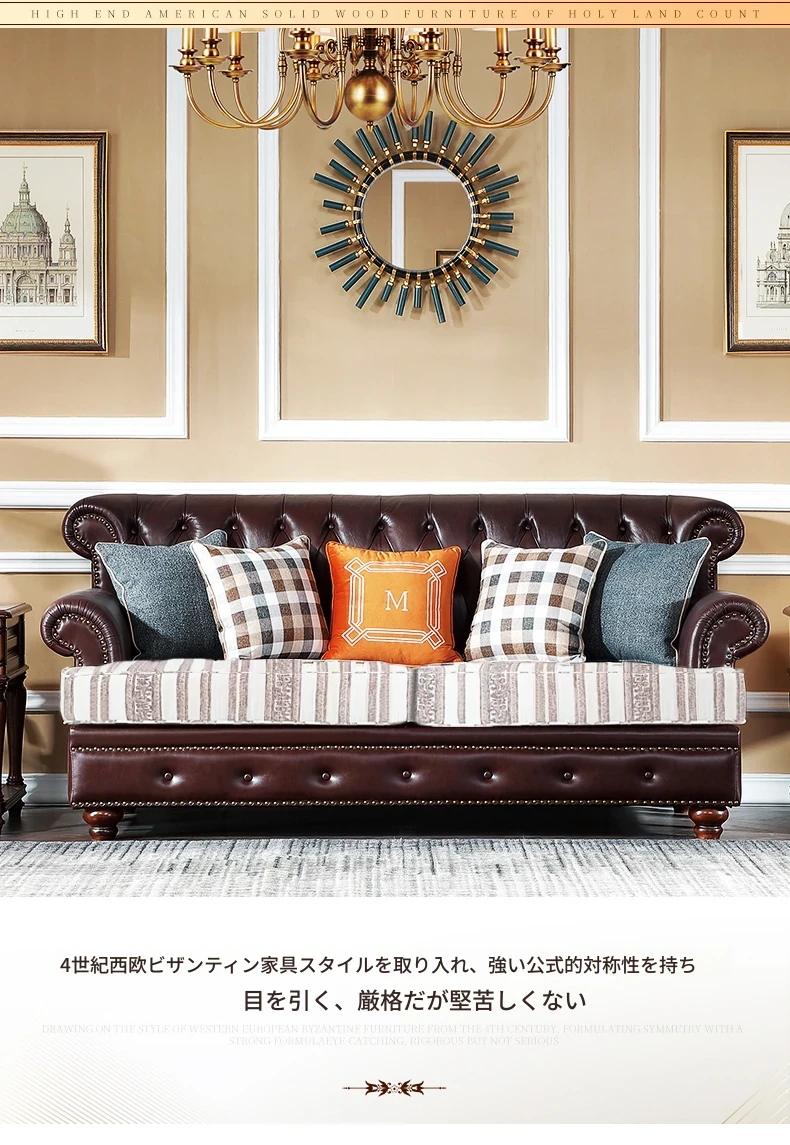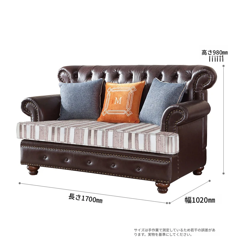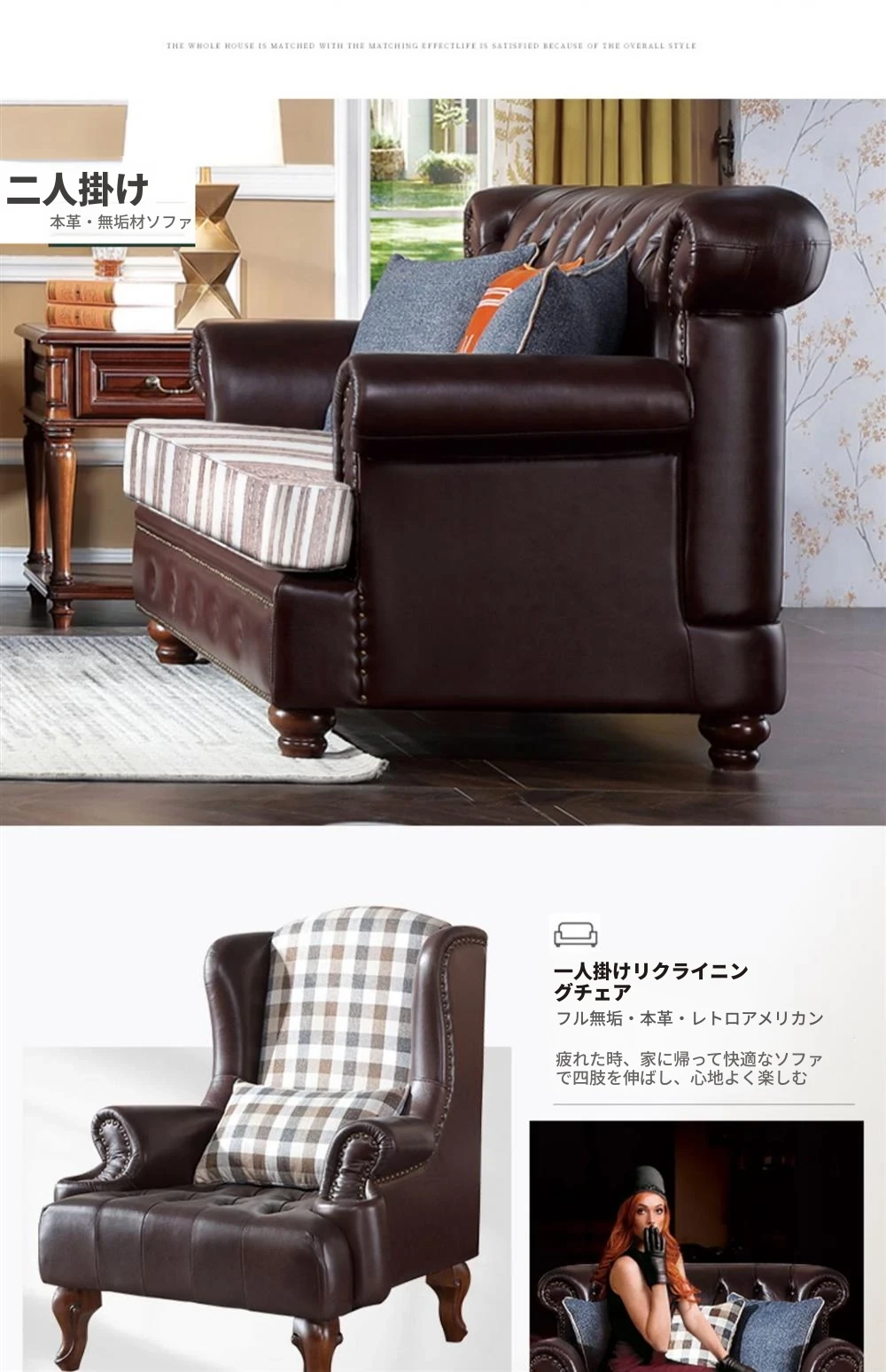 アメリカンレトロスタイルのボタン留め本革ソファ|ヴィンテージオイルワックス仕上げの牛革を使用した、エレガントなリビング・接客スペースにぴったりの高級ソファ。快適さとデザイン性を兼ね備えた一品です!