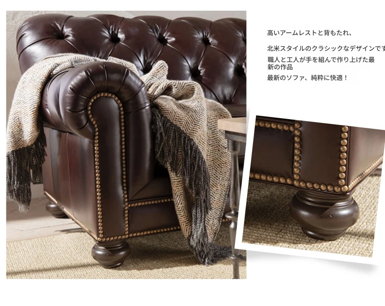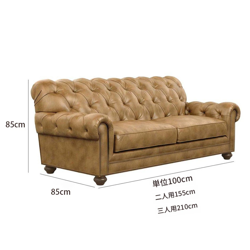 三人掛け/R級 オイルワックス本革/全本革 210*85*85cm