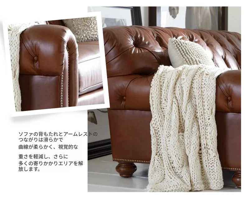 三人掛け/R級 オイルワックス本革/接触面 210*85*85cm