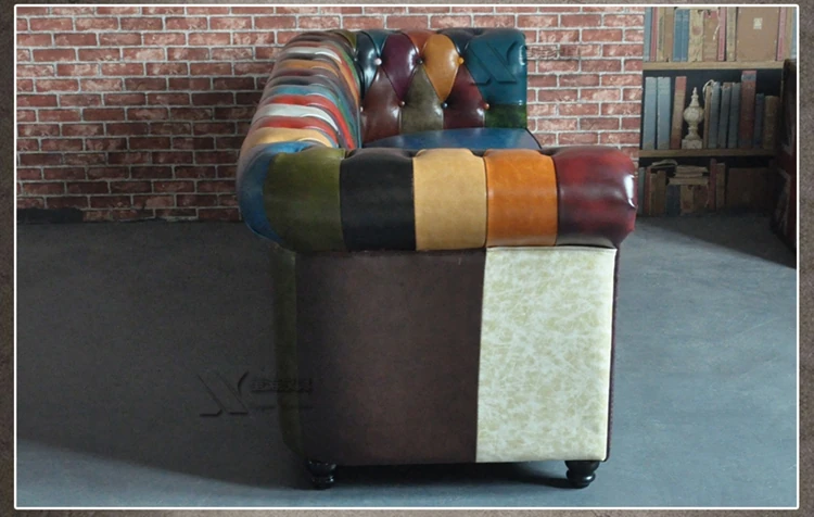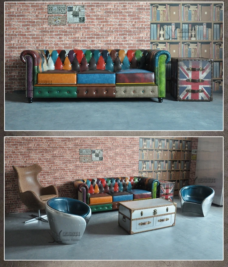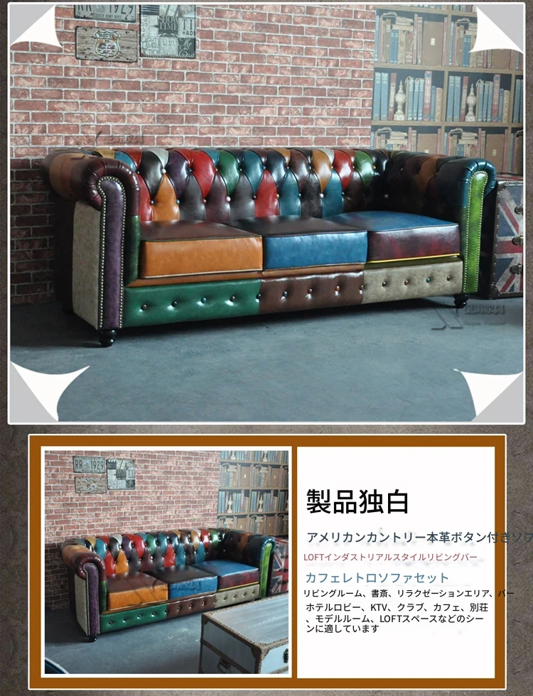 アメリカンレトロスタイルのレザーソファー - バーや会議室に最適!高級感あふれる中古品、シガーバーにぴったりなデザイン。色合いが魅力的で、訪れる人々を引きつけること間違いなし!
