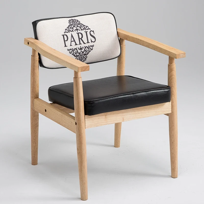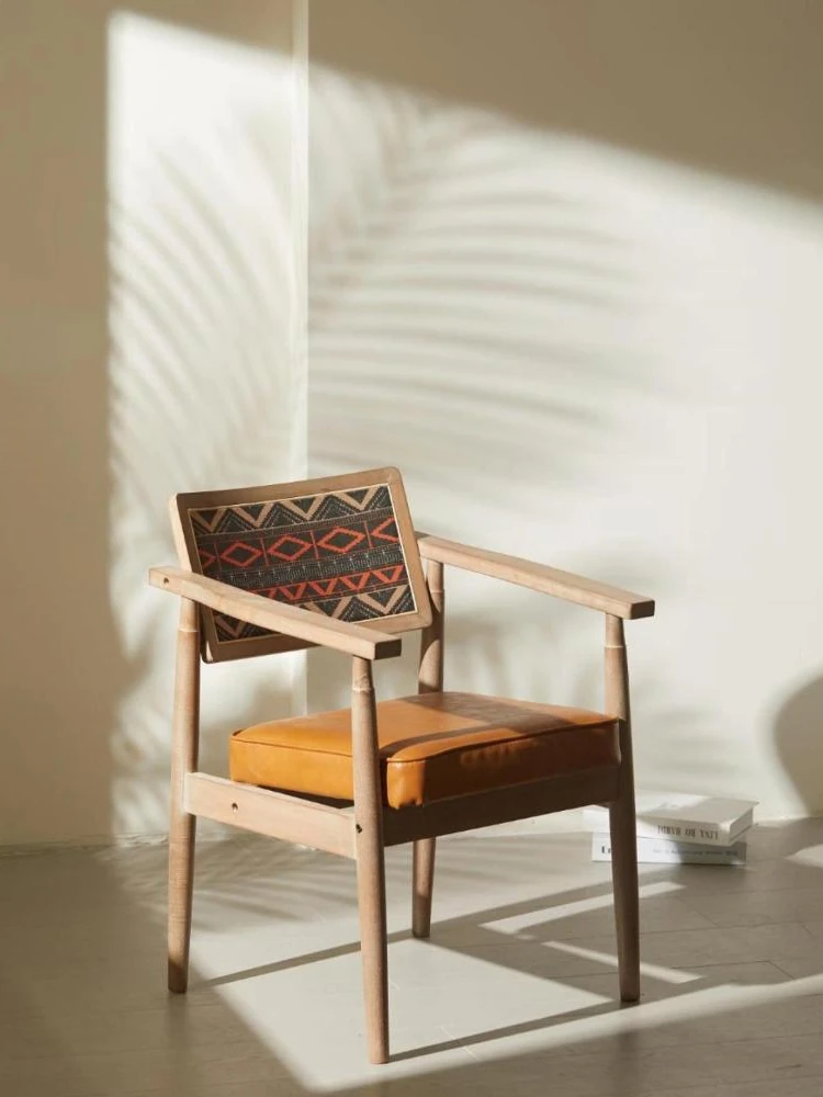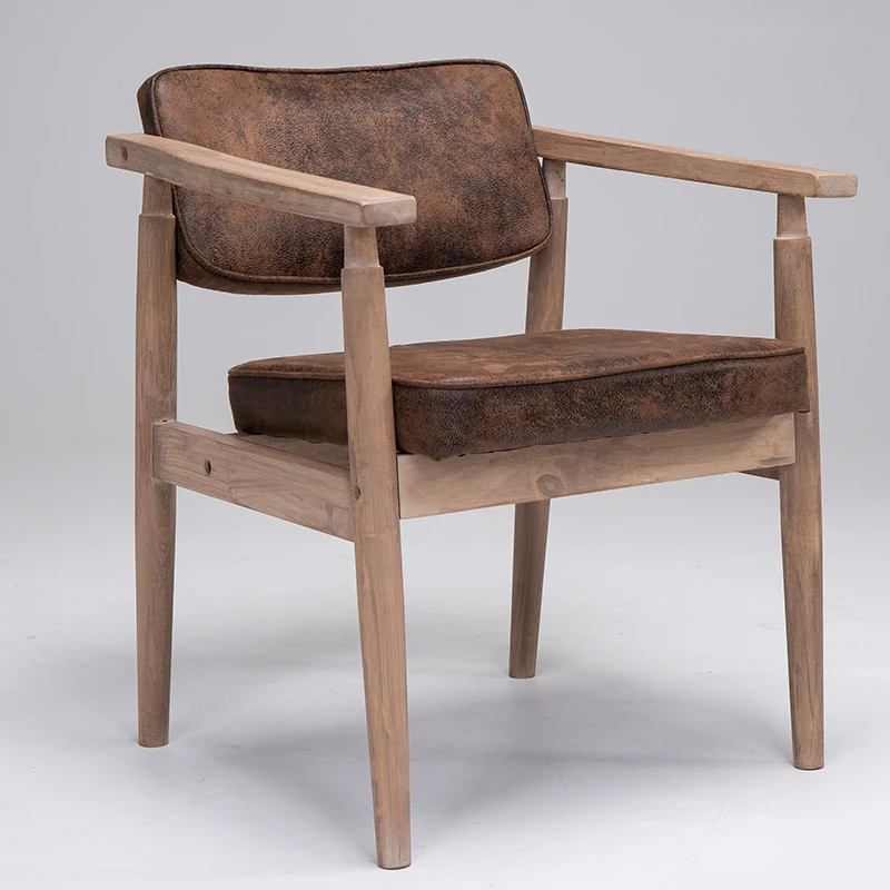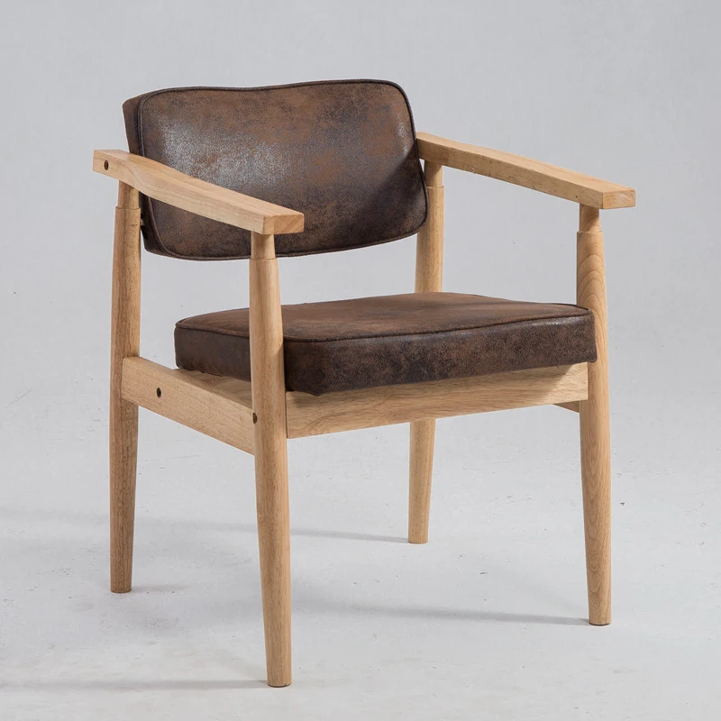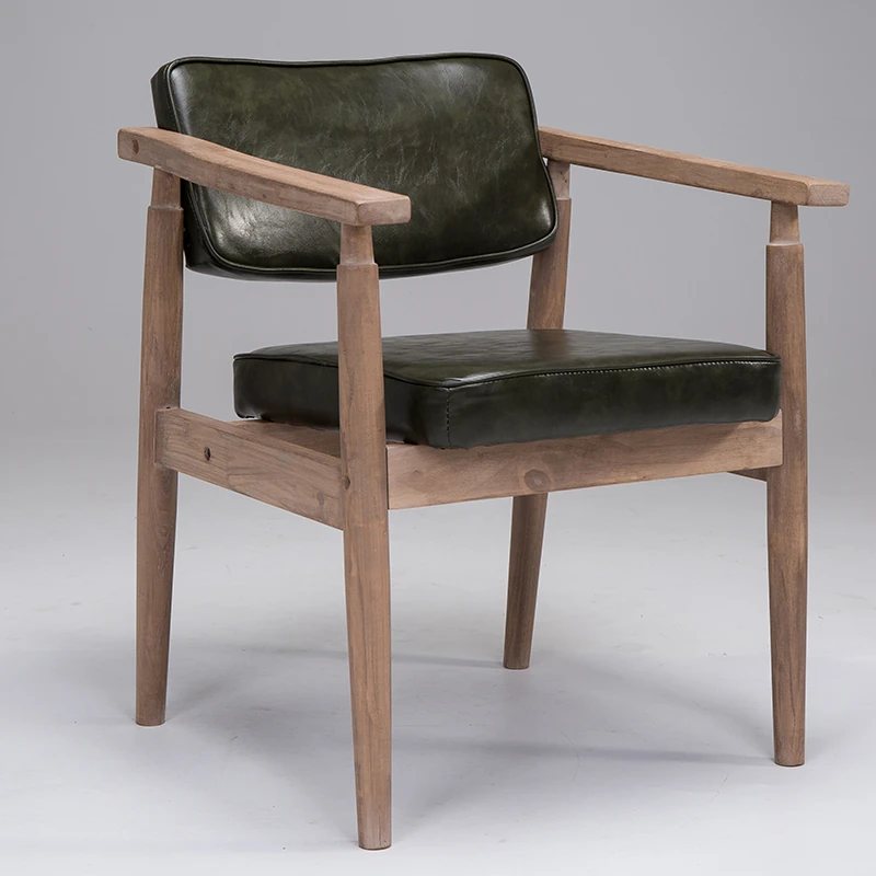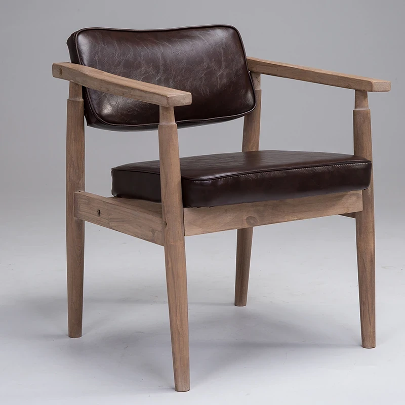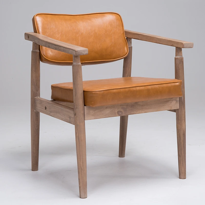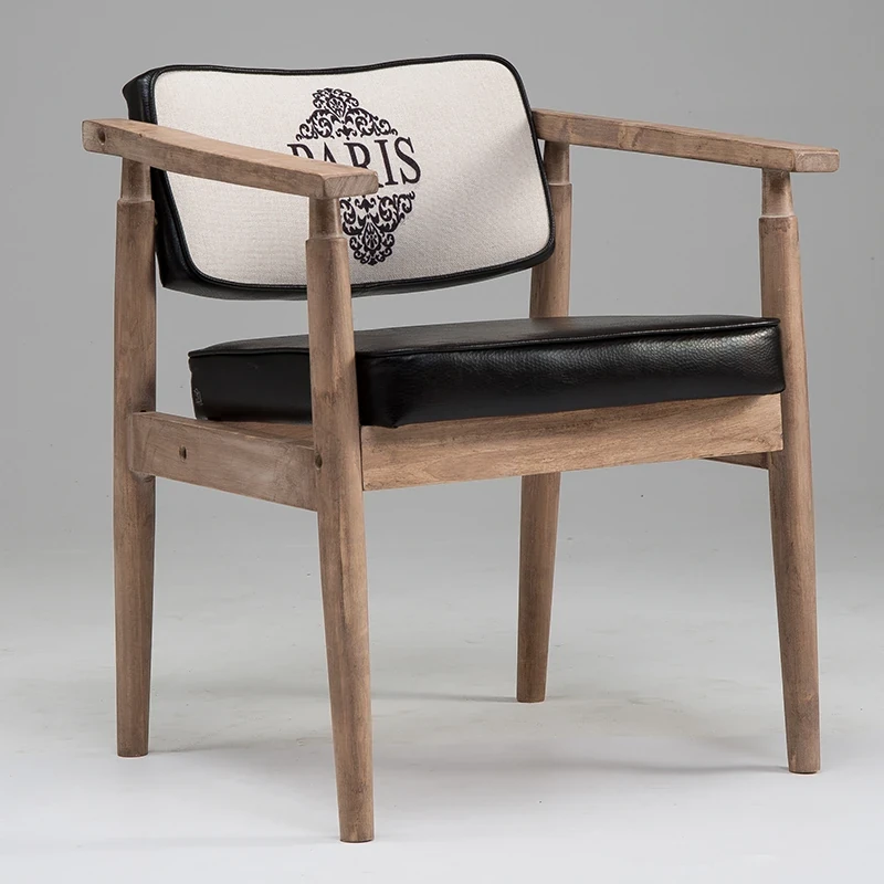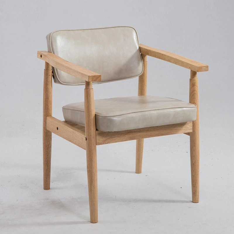 Vintage Beige Solid Wood Armchair - European Style Backrest Chair for Café, Dining Room, and Study - Perfect for Relaxation and Aesthetic Appeal