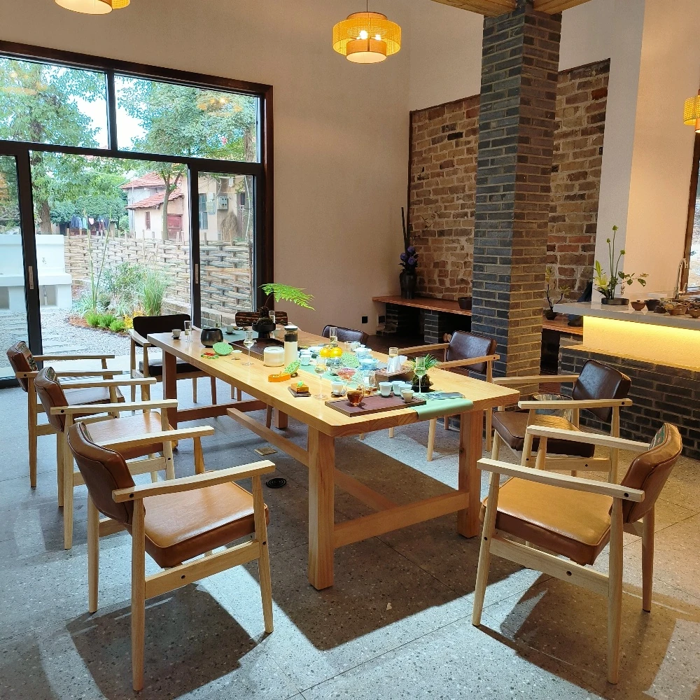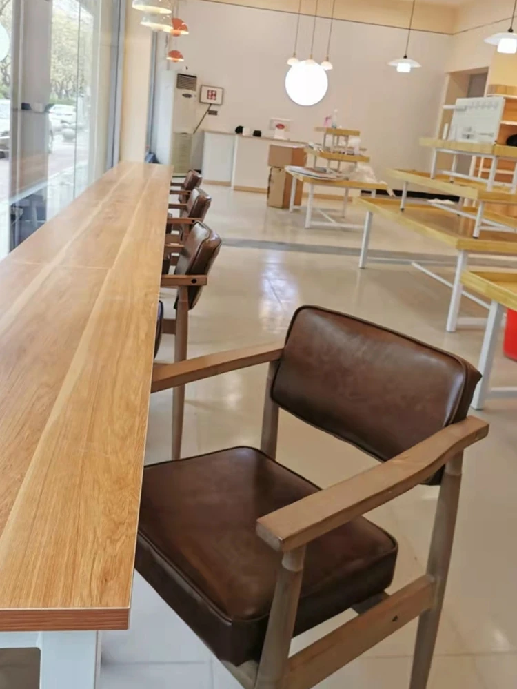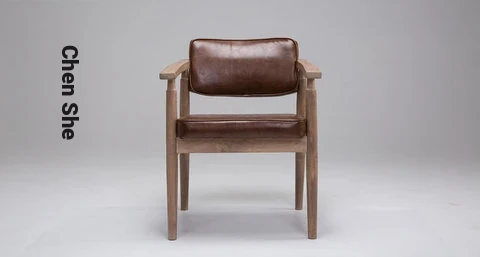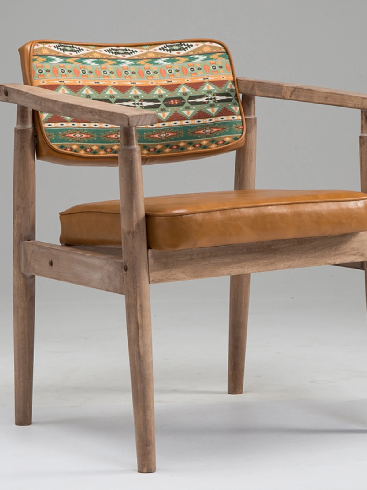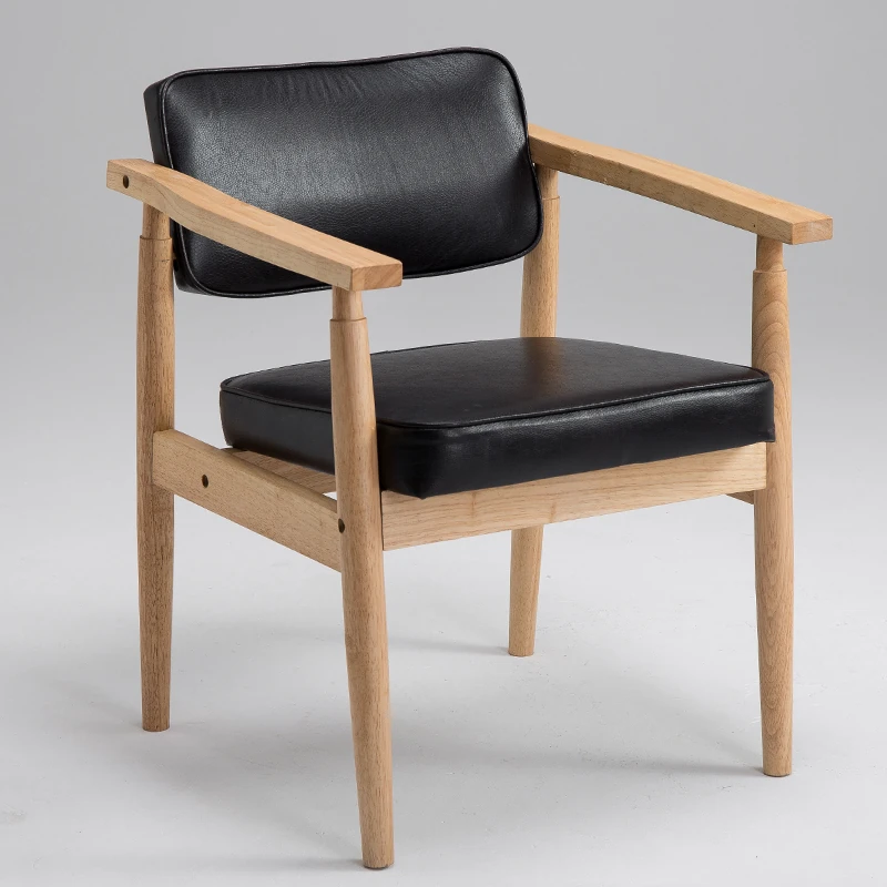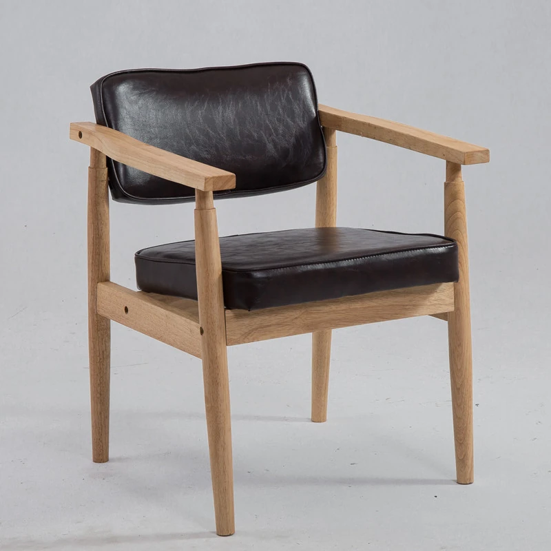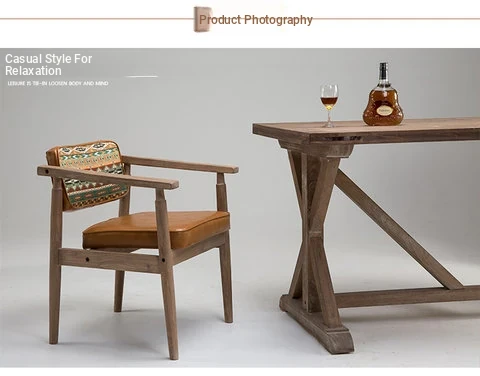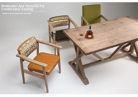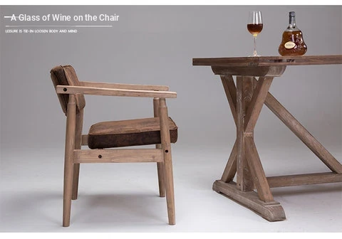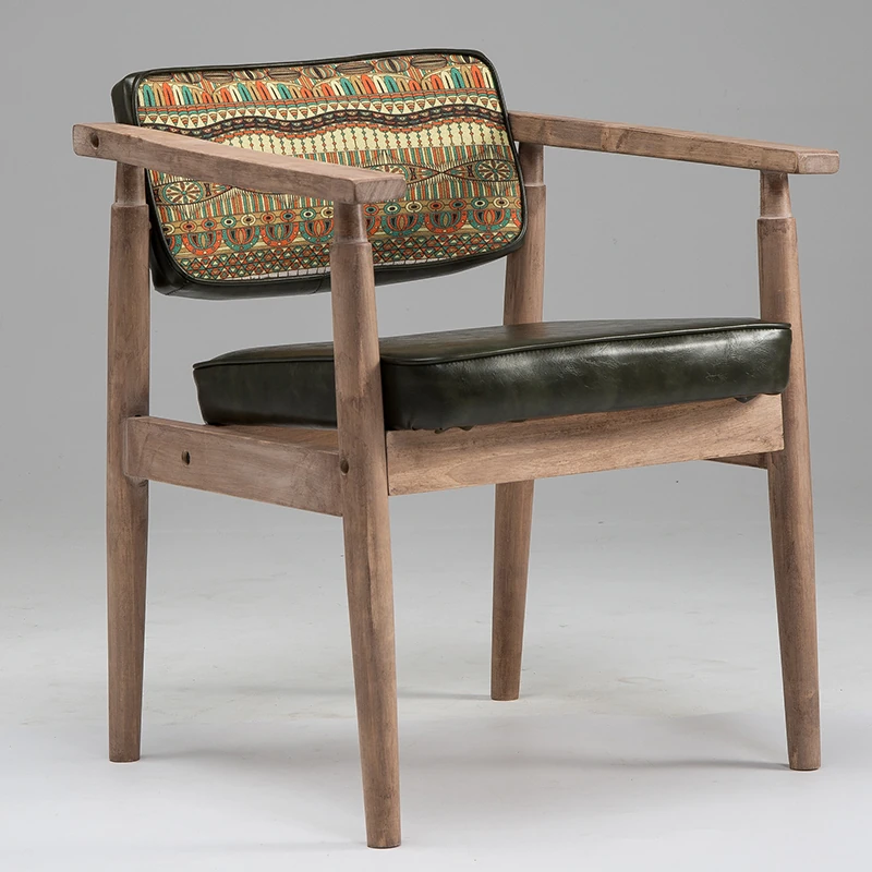 Vintage Beige Solid Wood Armchair - European Style Backrest Chair for Café, Dining Room, and Study - Perfect for Relaxation and Aesthetic Appeal