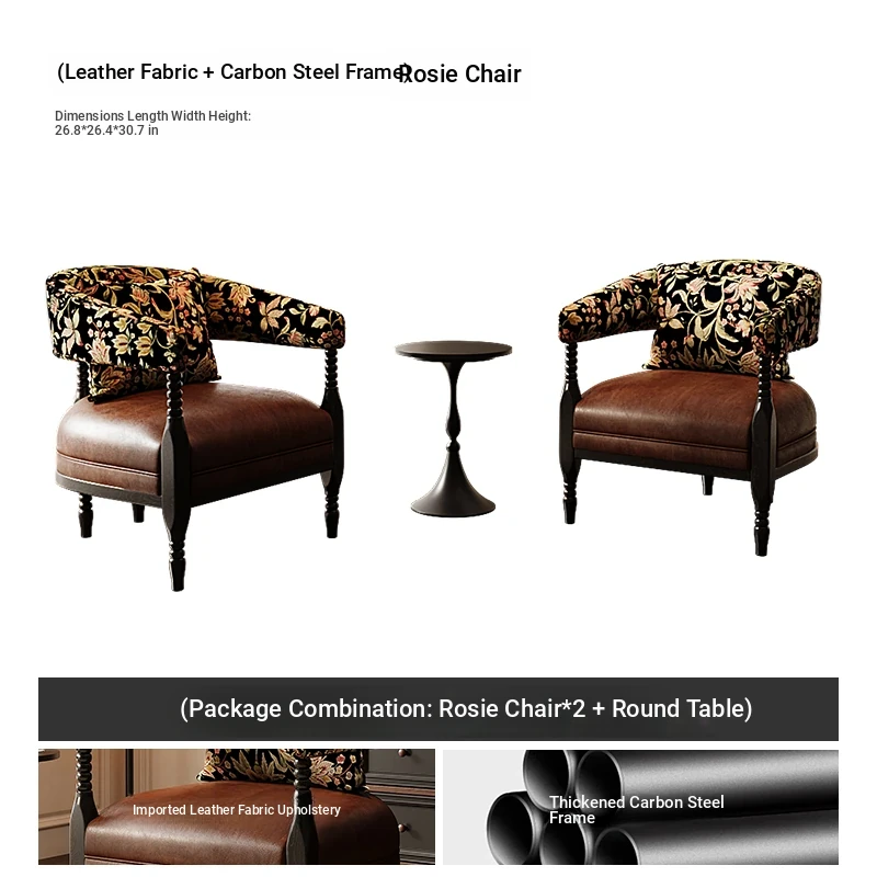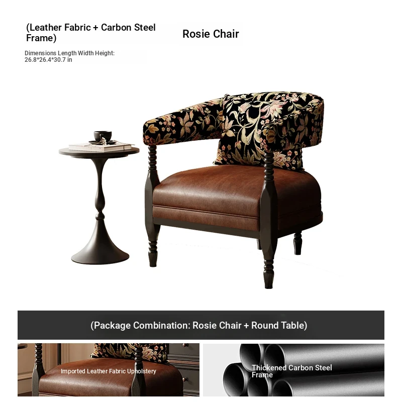 [Package combination] 1 leather Brown Roxie chair + round table diameter 19.69in