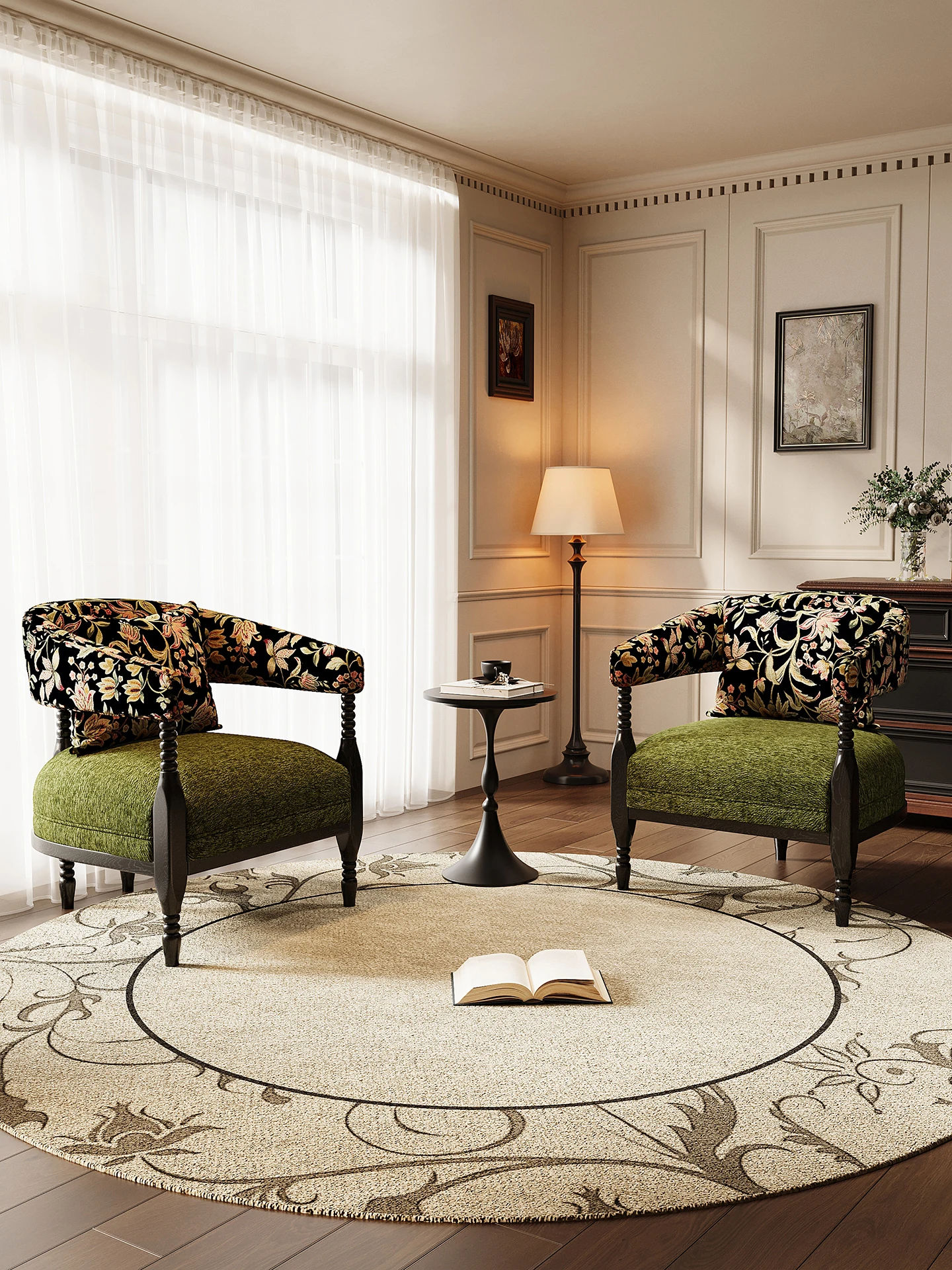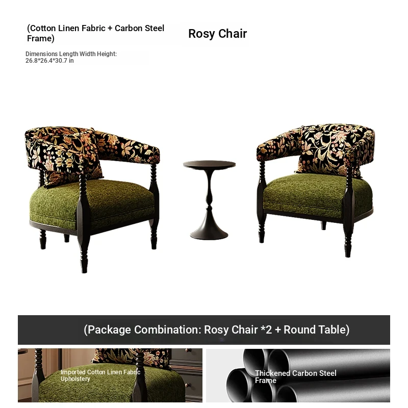 [Package combination] 2 green Roxie chairs + round table diameter 19.69in