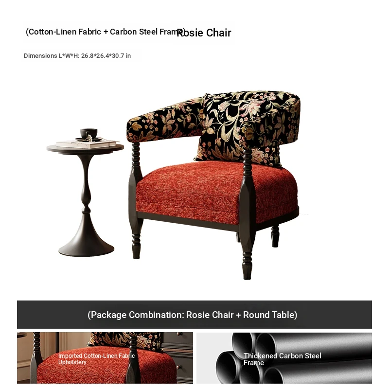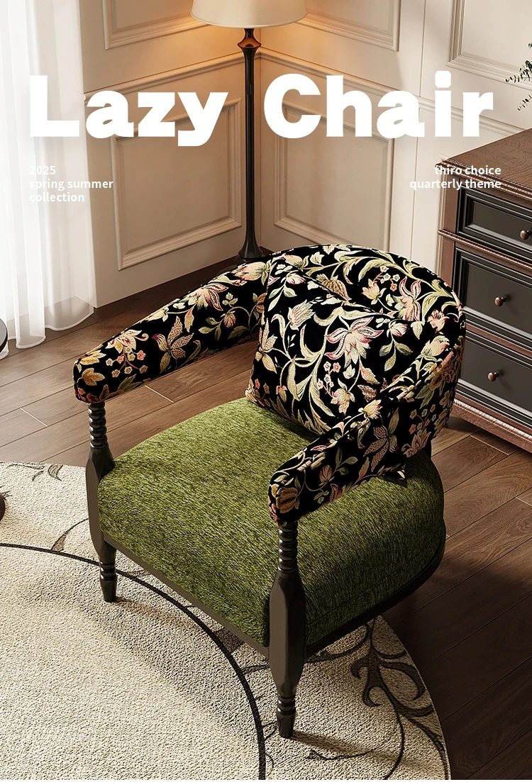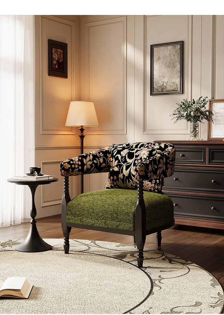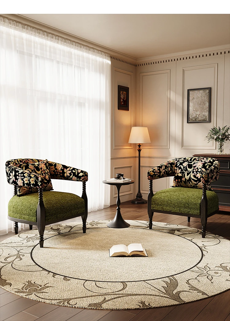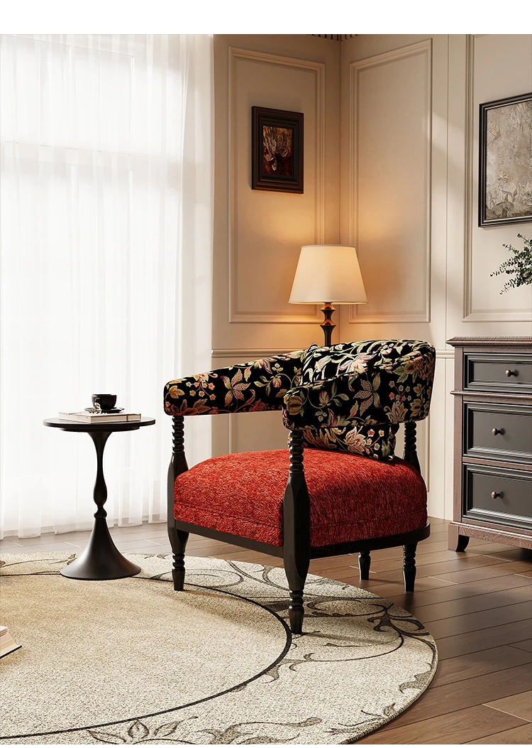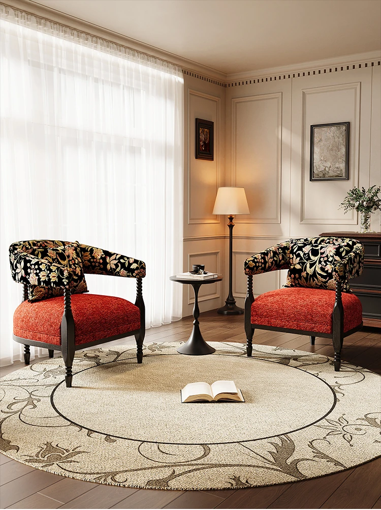 Vintage French Style Designer Single Sofa Chair – Retro American Mid-Century Rosie Leisure Hotel Armchair for Small Living Room or Balcony Spaces