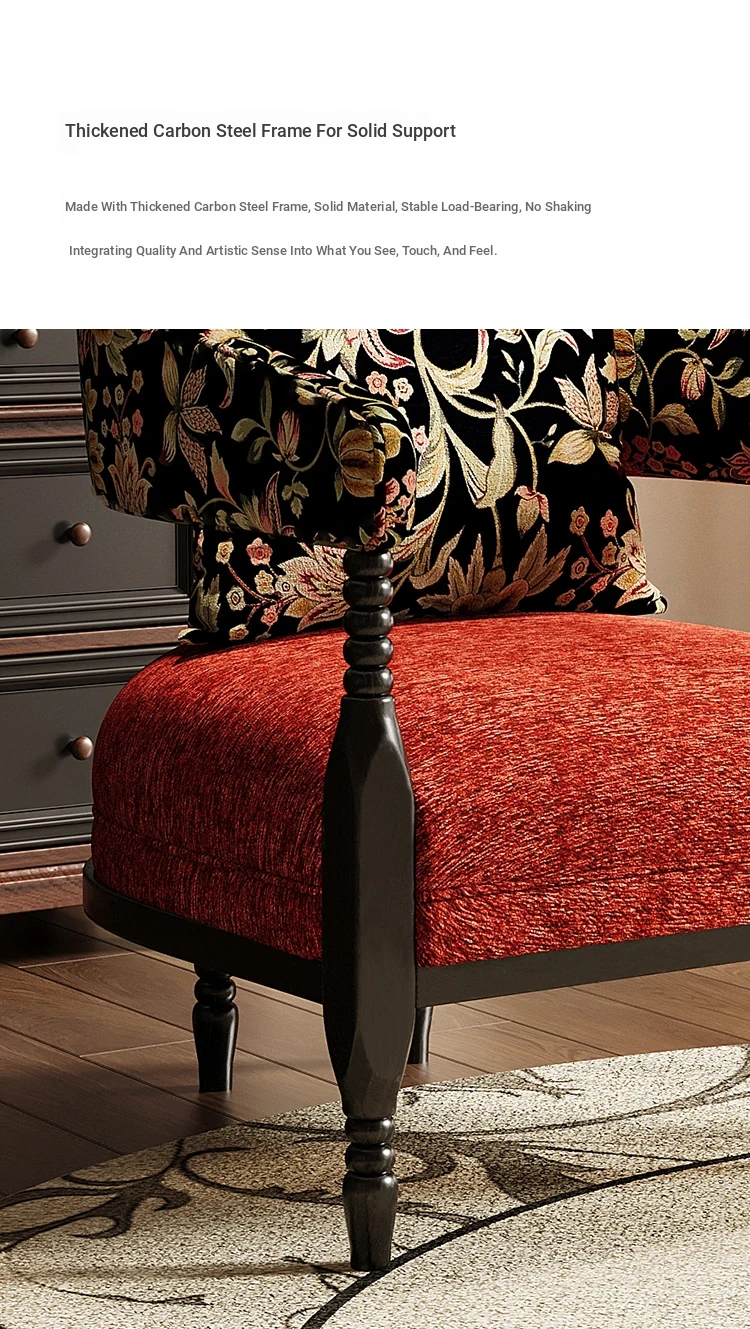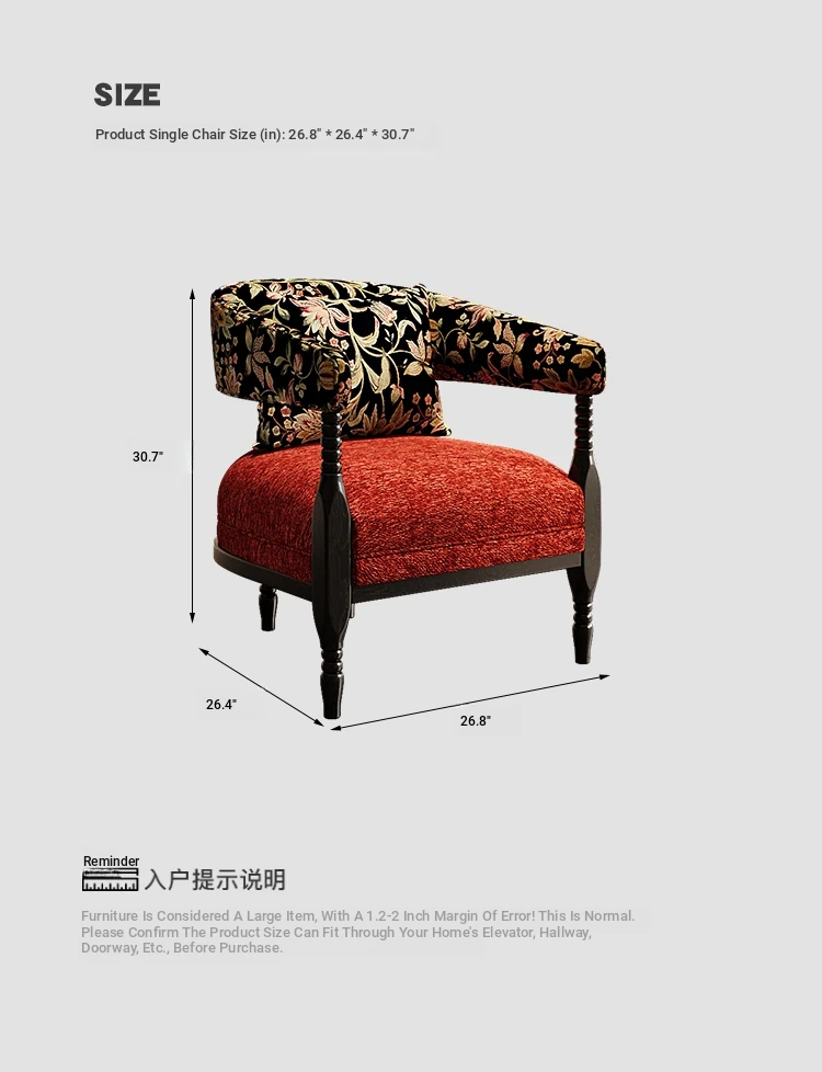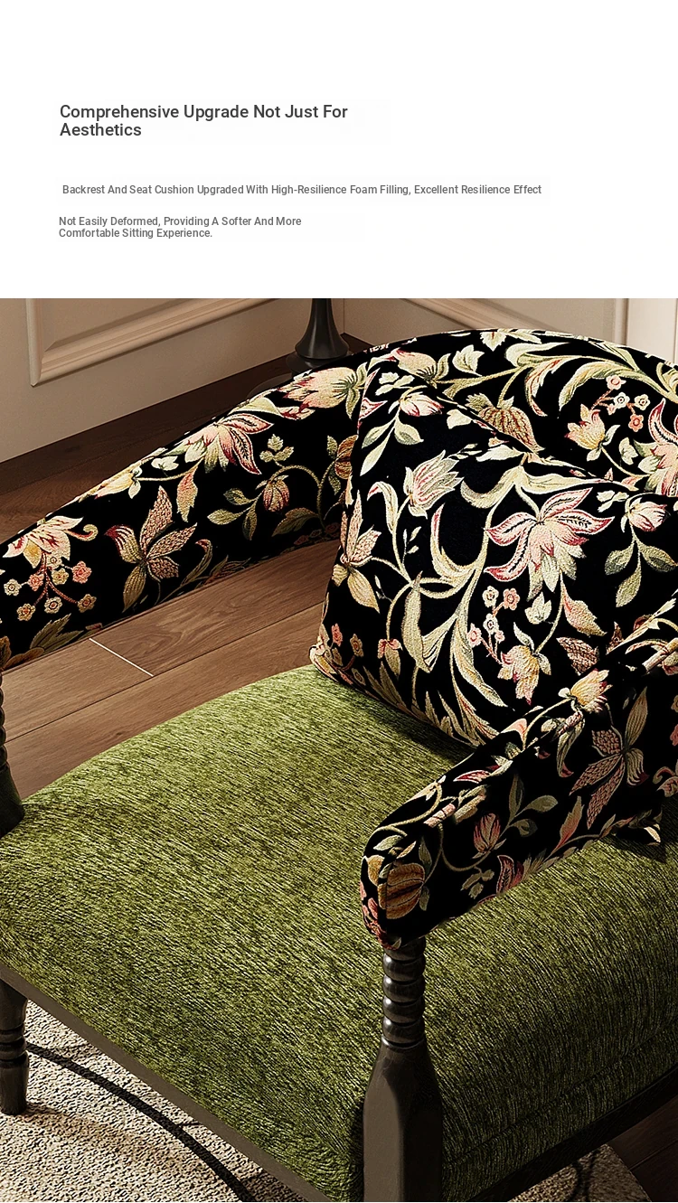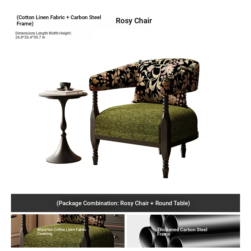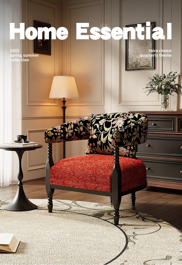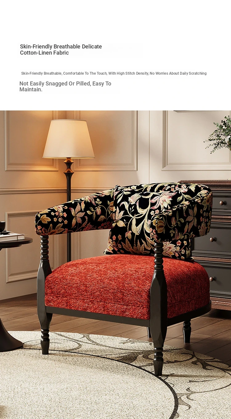 Vintage French Style Designer Single Sofa Chair – Retro American Mid-Century Rosie Leisure Hotel Armchair for Small Living Room or Balcony Spaces