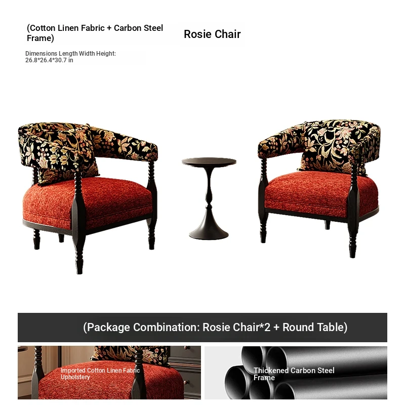 [Package combination] 2 red Roxie chairs + round table diameter 19.69in