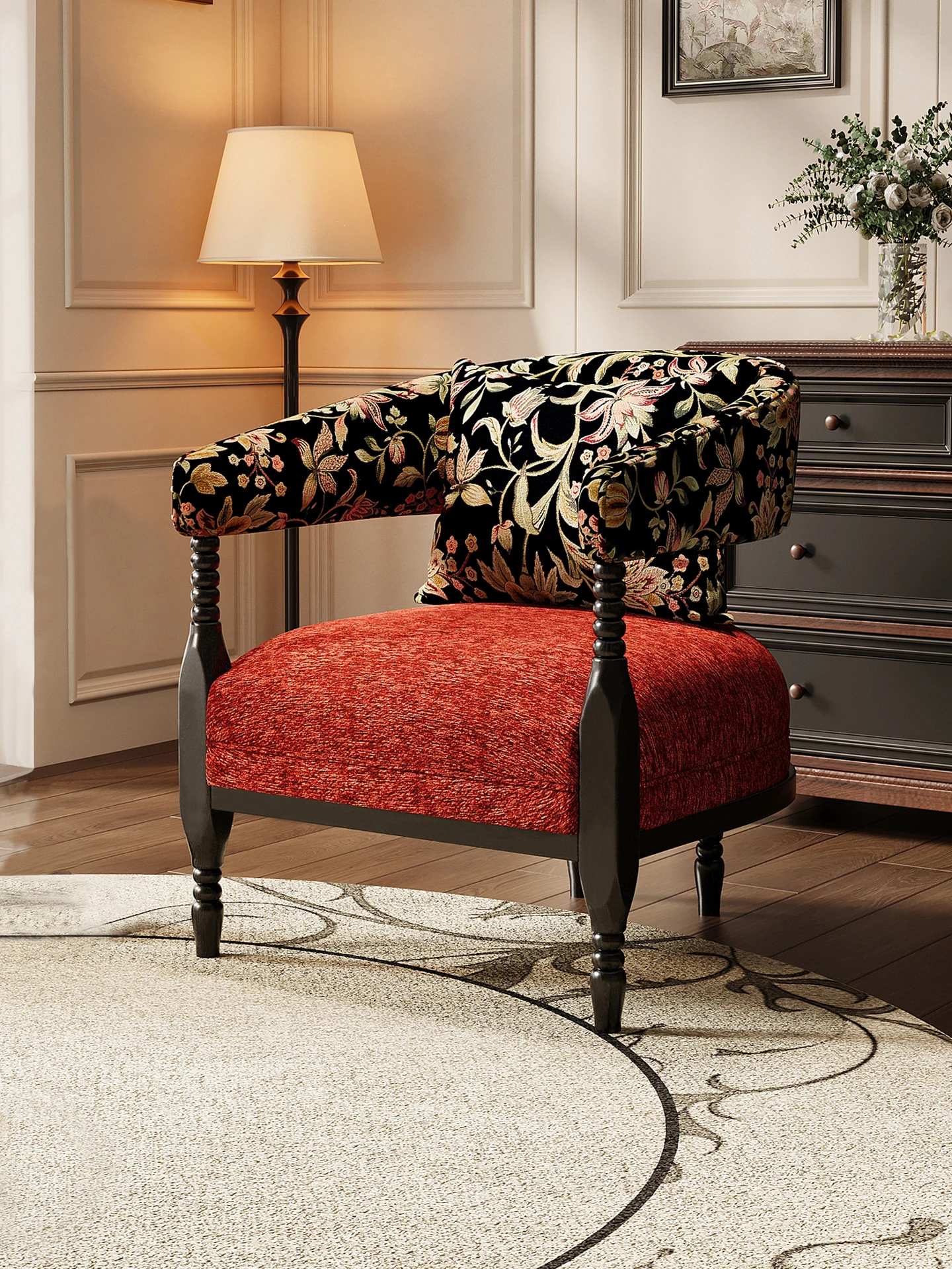 Roxie Chair [Red Cotton-Carbon Steel]]
