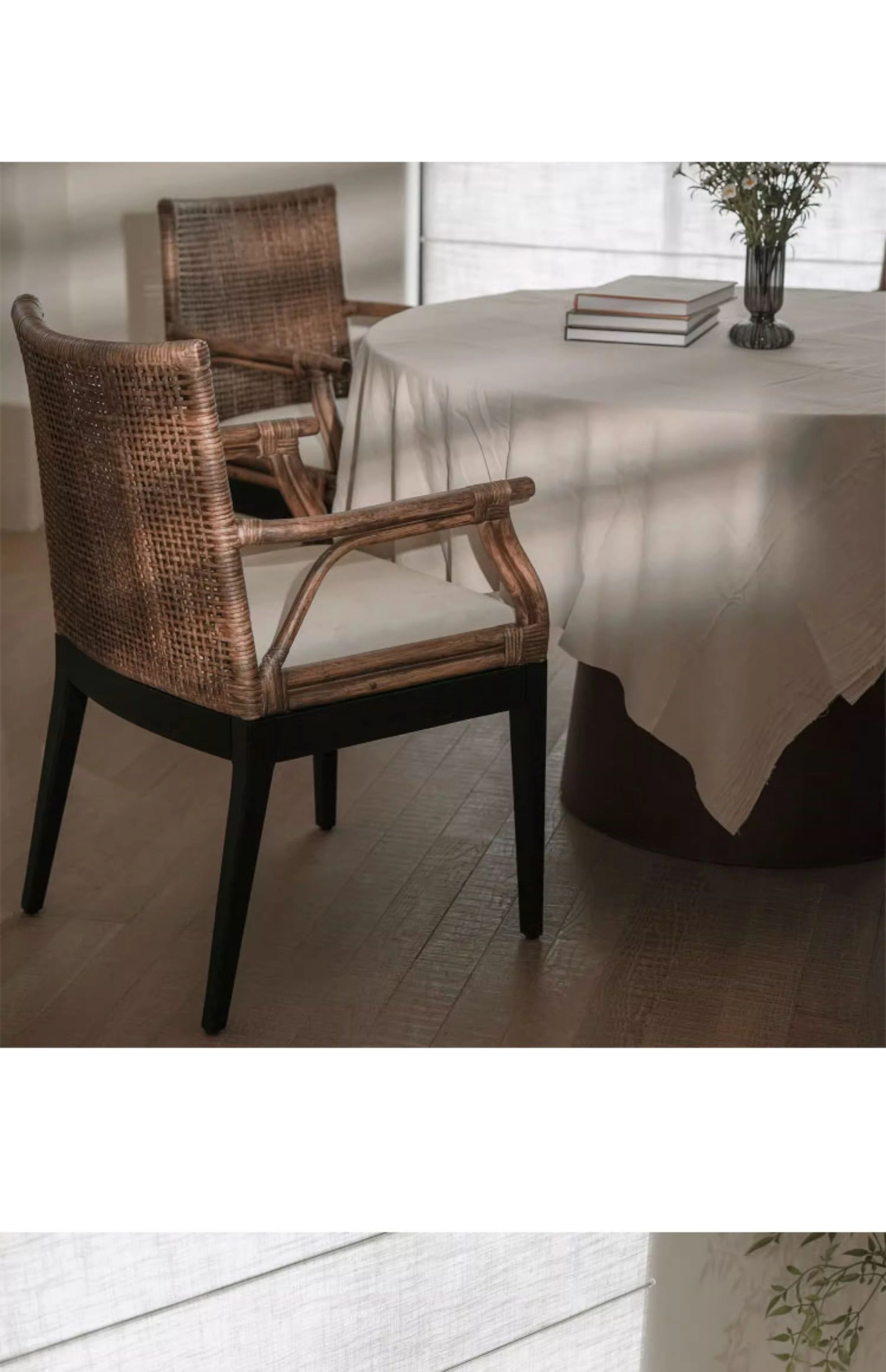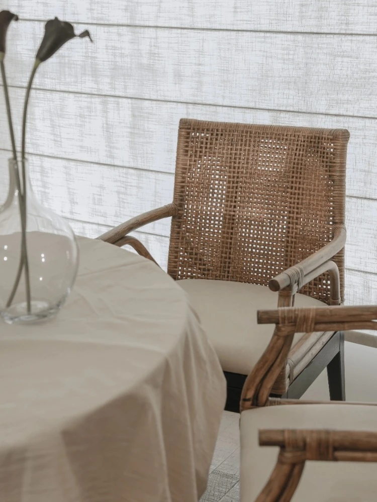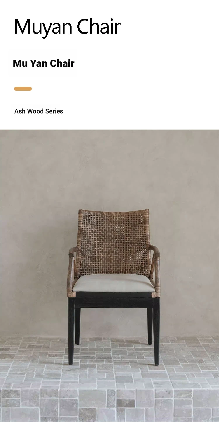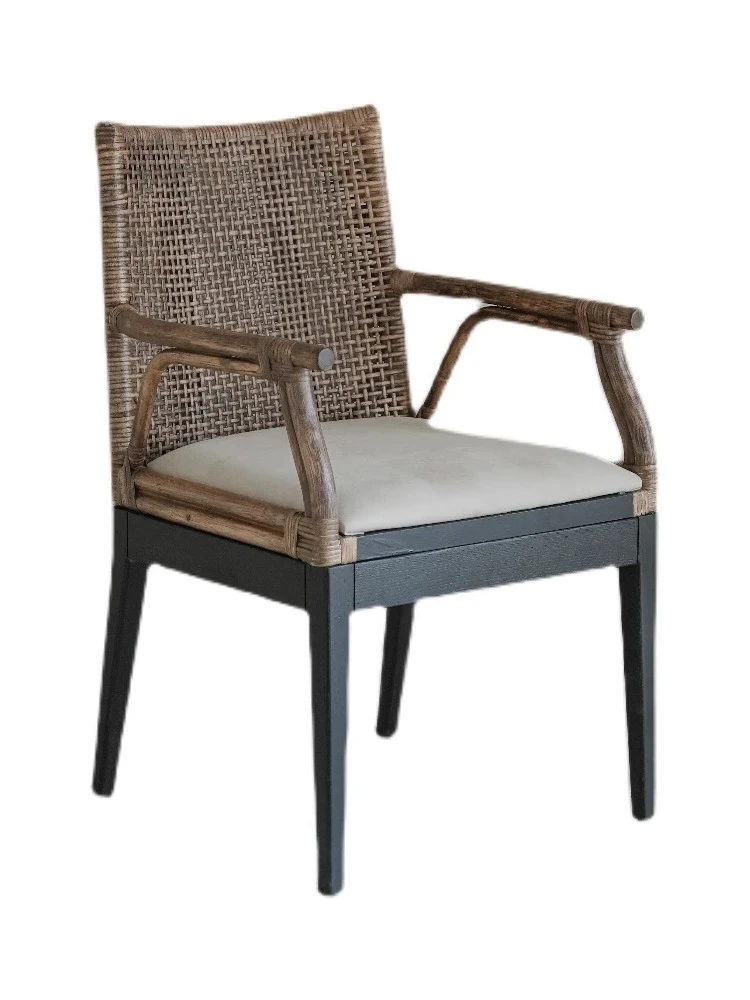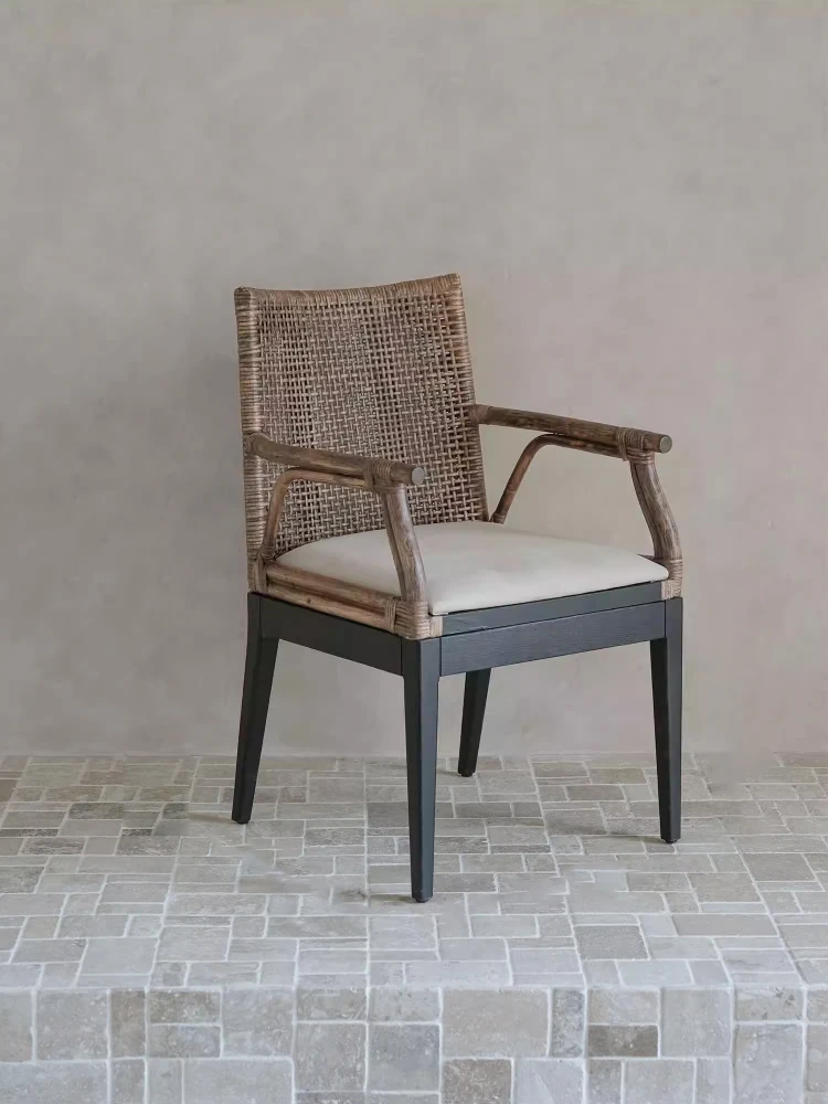 Vintage Rattan Lounge Chair - Authentic Woven Design for Tea Rooms and Guesthouses, Embracing Wabi-Sabi Aesthetics, Stylish Designer Backrest Dining Chair for Your Home