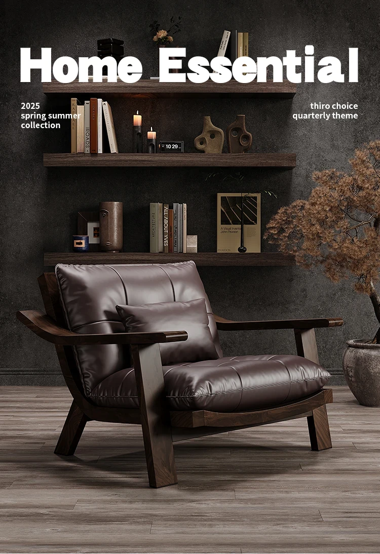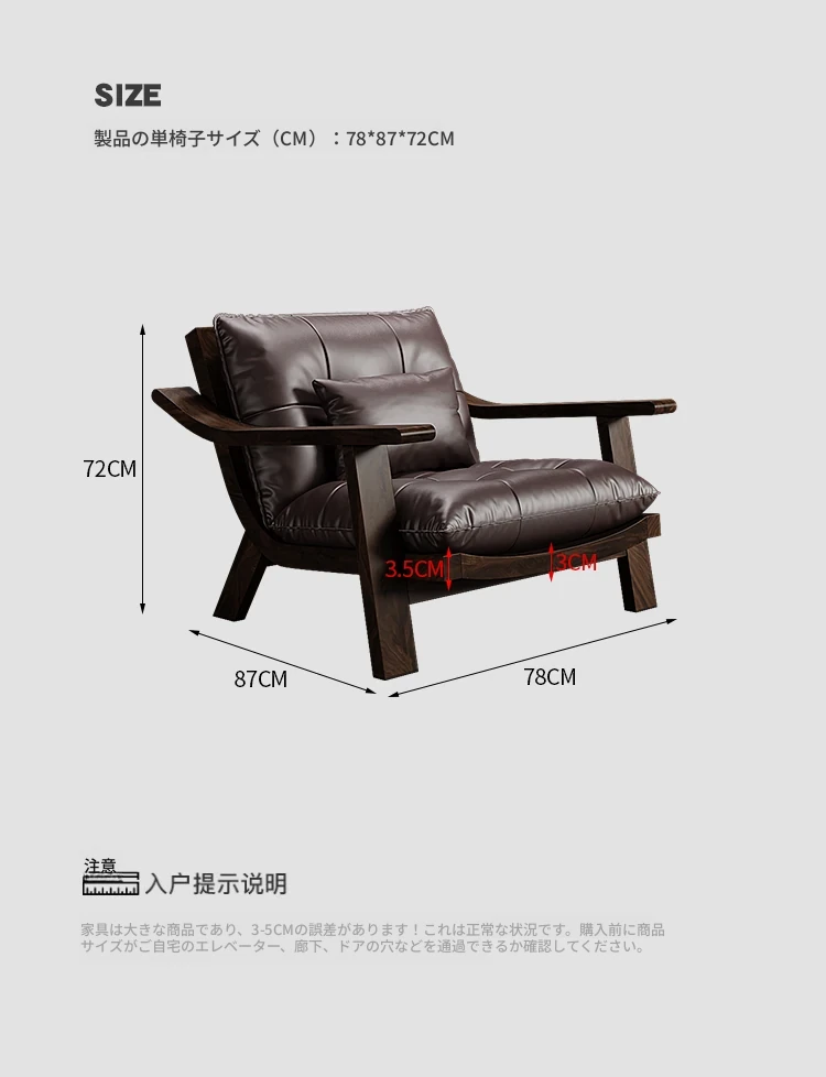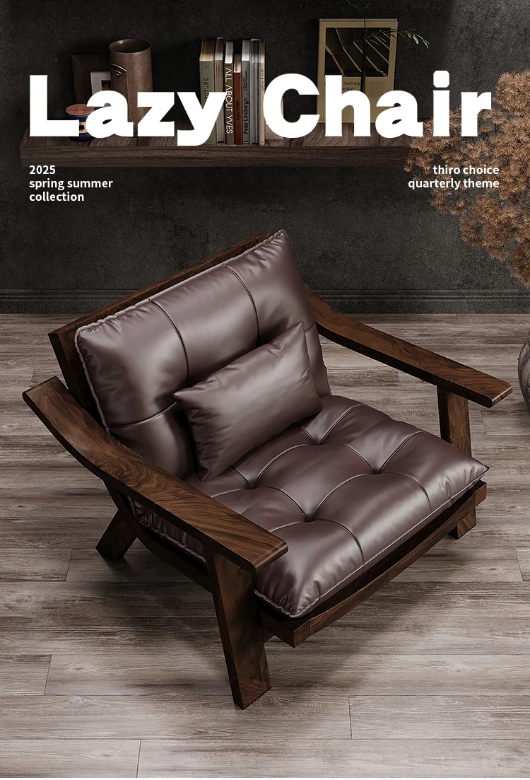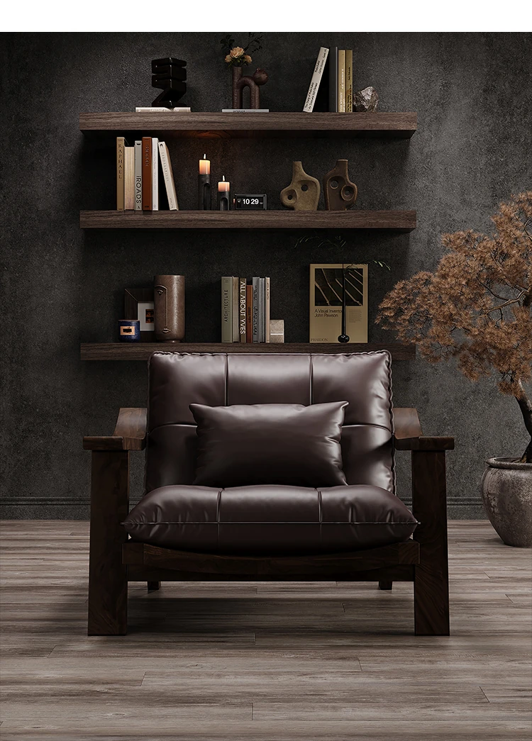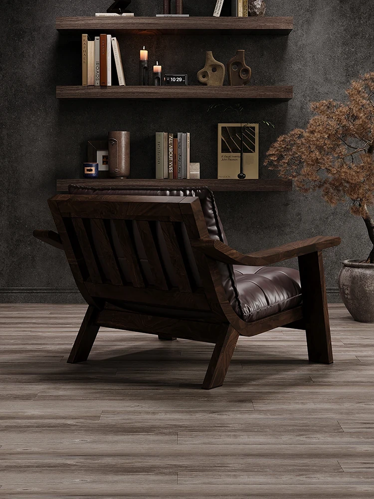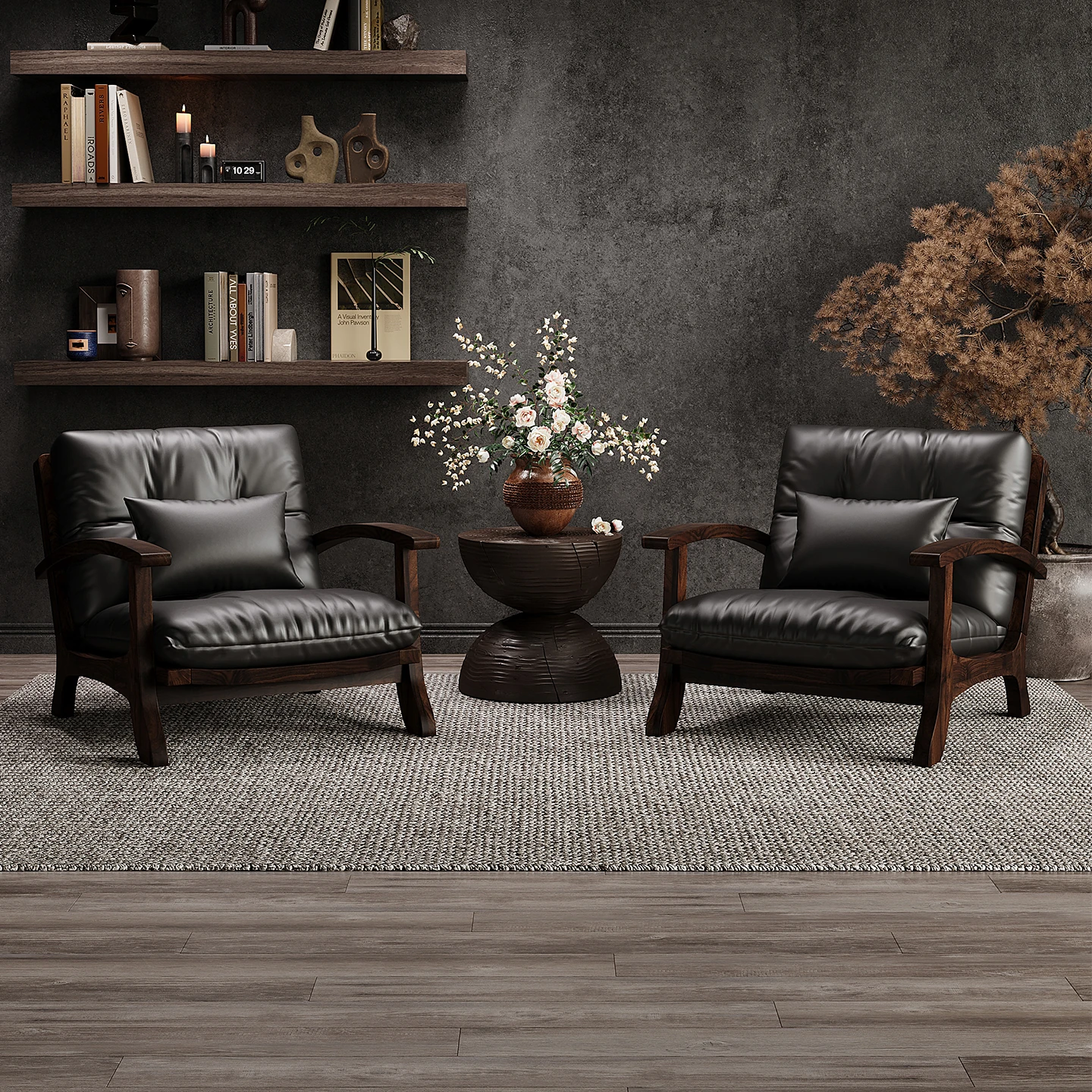 ヴィンテージ風の無垢材リラックスチェア - 本革製のデザイナー一人掛けソファ、ティーチェアとしても最適!背もたれとアームレスト付きで、くつろぎの時間を演出します。どんなインテリアにもマッチするおしゃれなアイテム!