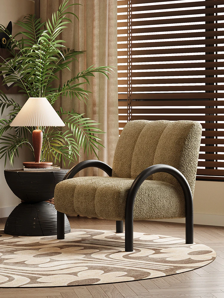 中古の侘寂風デザイン、雪ニルカラーのリラックスチェア!小型スペースに最適な一人掛けソファ。リビングやバルコニーで心地よい時間をお楽しみください。