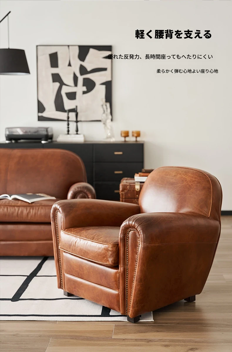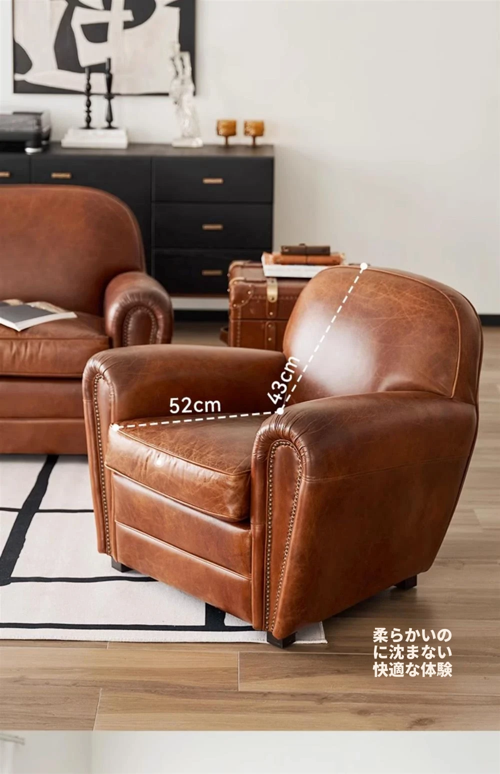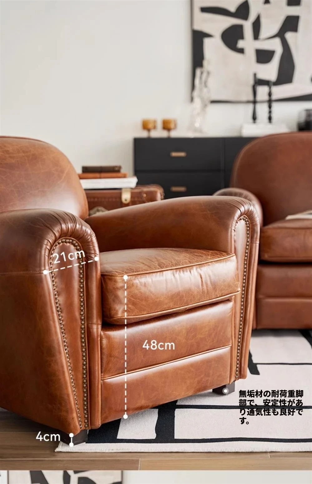 ヴィンテージ風リラックスチェア|レトロオイルワックスレザー・トラチェア|アメリカンスタイルのリビング&書斎用ソファチェア|高級教父スタイル・シガーチェアで贅沢なひとときを!