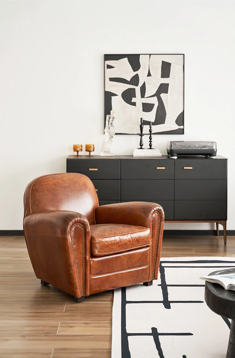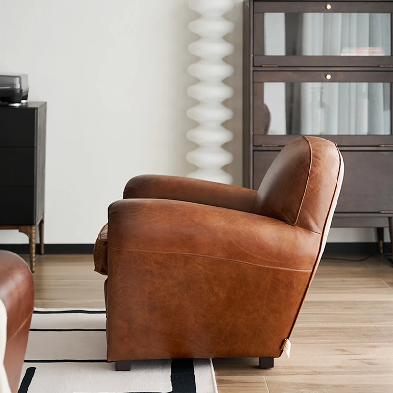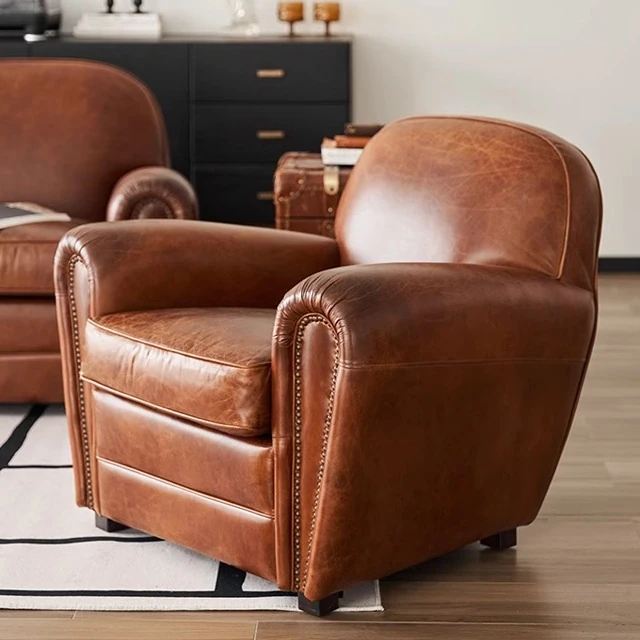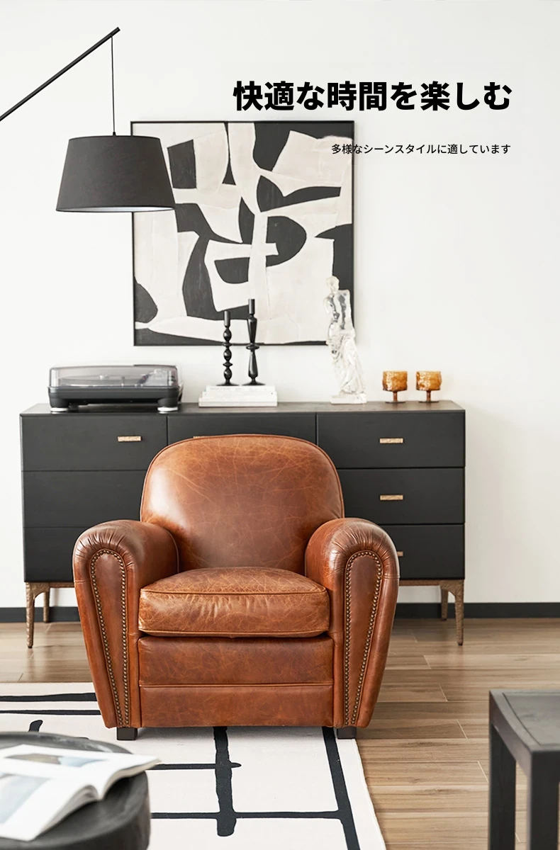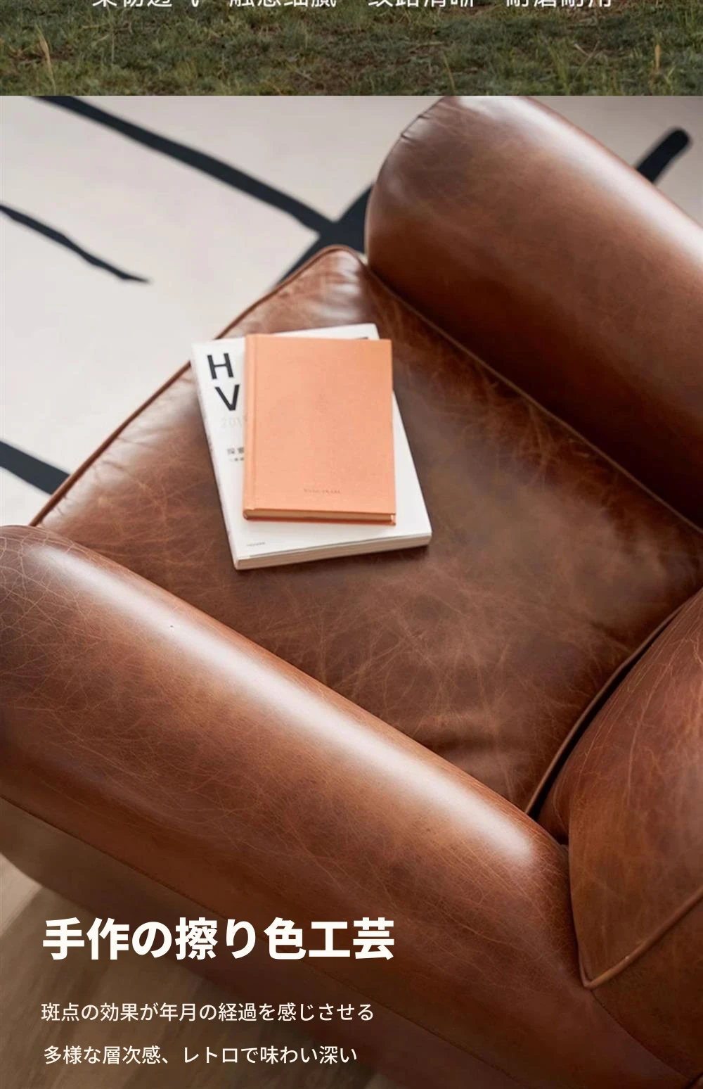 ヴィンテージ風リラックスチェア|レトロオイルワックスレザー・トラチェア|アメリカンスタイルのリビング&書斎用ソファチェア|高級教父スタイル・シガーチェアで贅沢なひとときを!