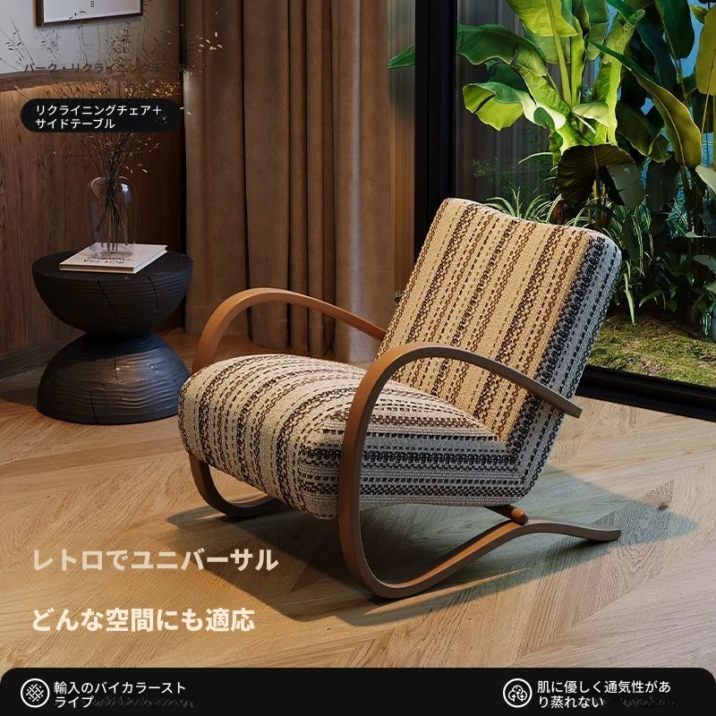 バーク・リクライニングチェア+サイドテーブル【ブラックフレーム】