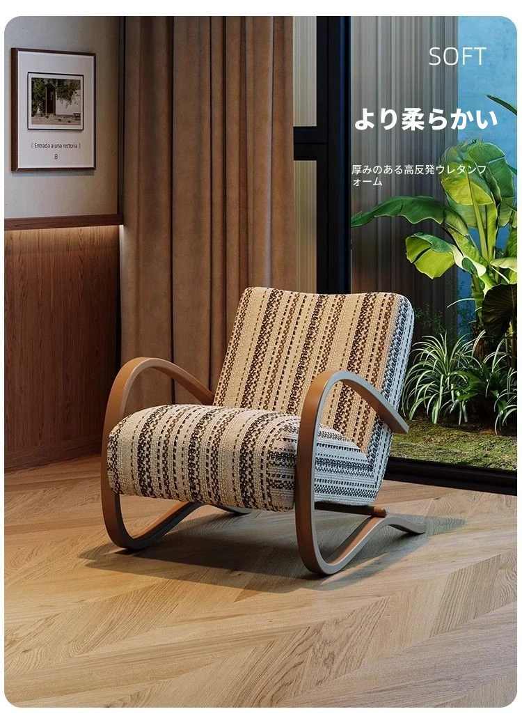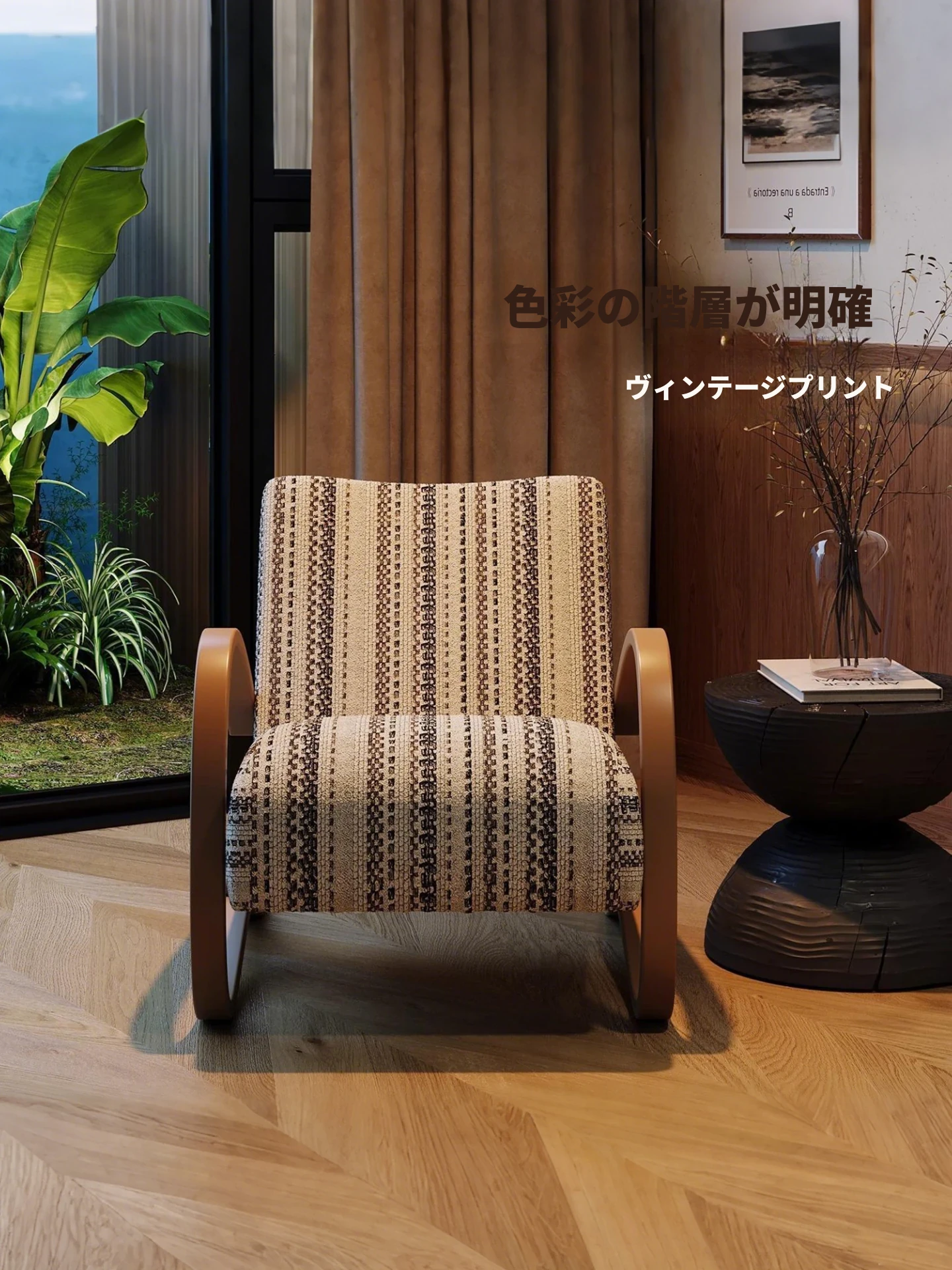 ヴィンテージ風の一人掛けソファ、小型住宅にぴったりなデザイナーのラグジュアリーリーディングチェア。トレンドのロースタイルで、くつろぎの時間を演出するバークチェア。