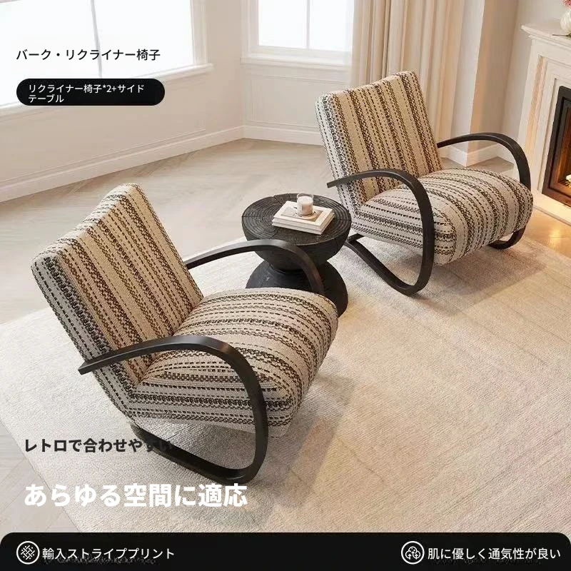 2つのバーク・リクライニングチェア+サイドテーブル【ブラックフレーム】