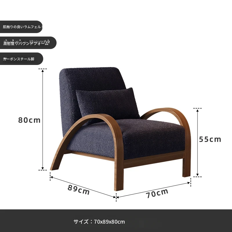 一人用ソファチェア【ブラックブルー 羊毛フリース - 木目転写】