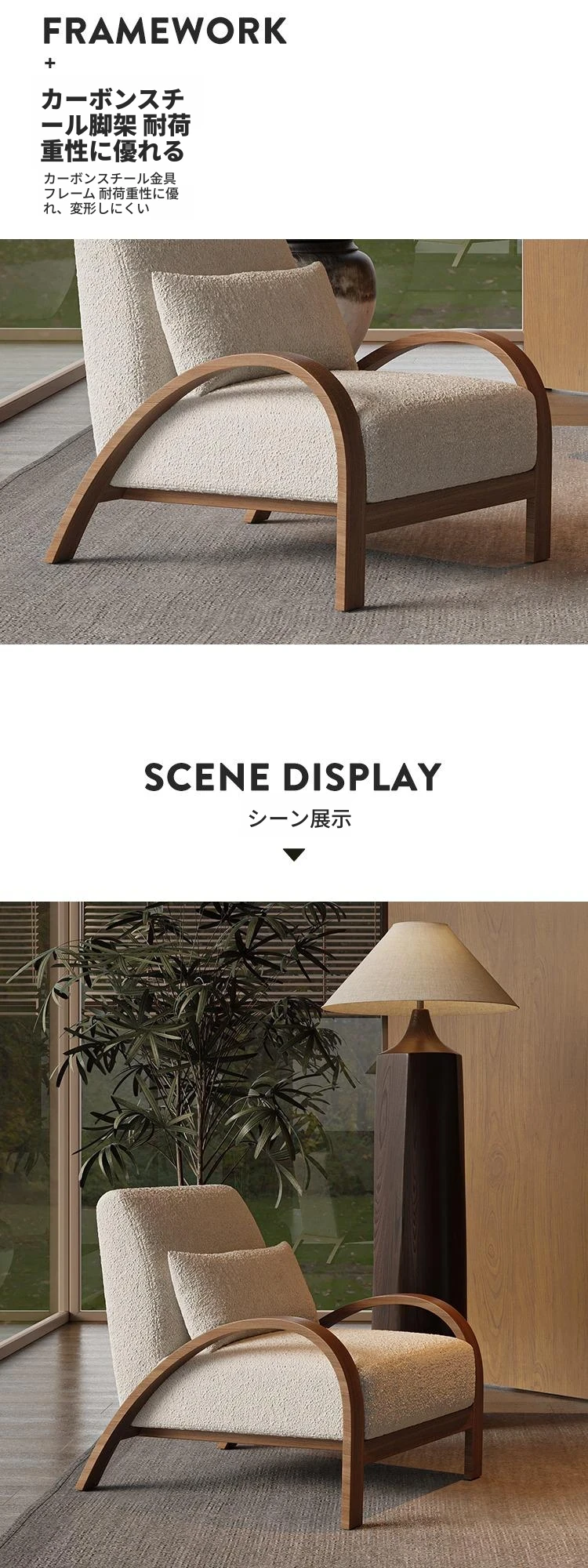 侘寂風デザインのミニマルな一人用ソファチェア - フランススタイルの家庭用、リビングやバルコニーに最適なゲスト用リラックスチェア!シンプルさと美しさを兼ね備えた、居心地の良い空間を演出します。