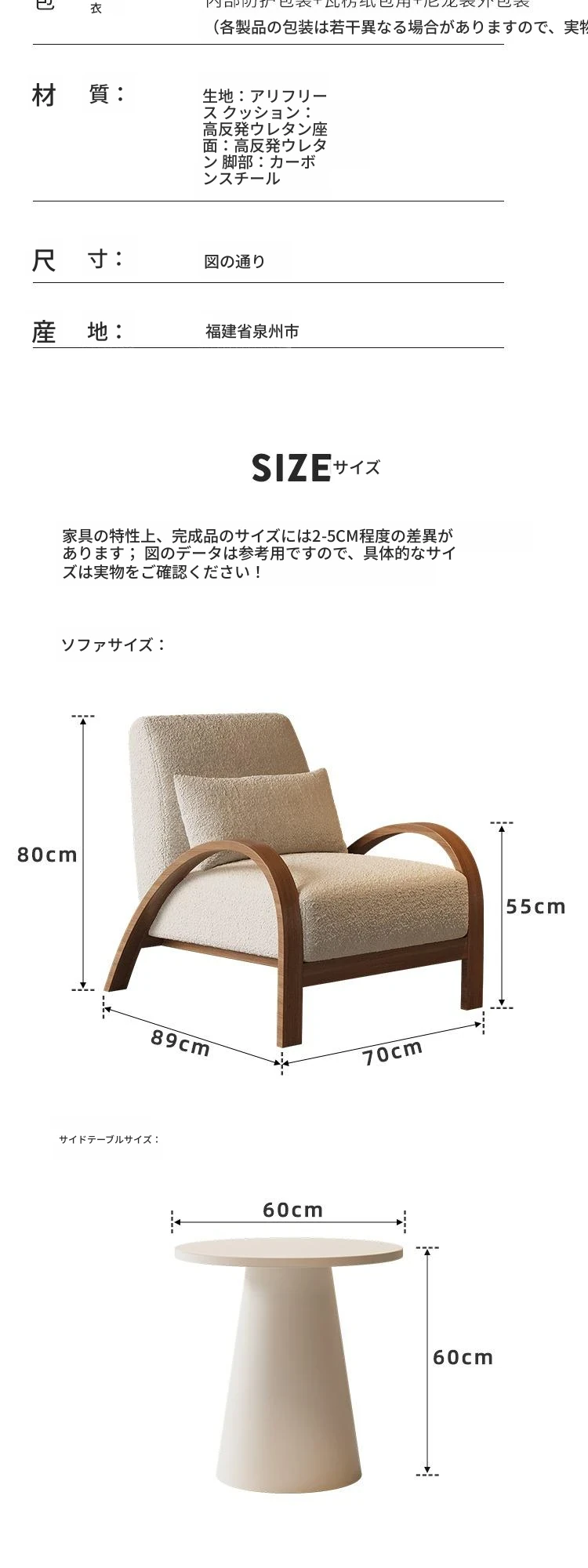 【セット: ミルクホワイト 羊毛フリース】2脚ソファチェア+サイドテーブル直径50cm
