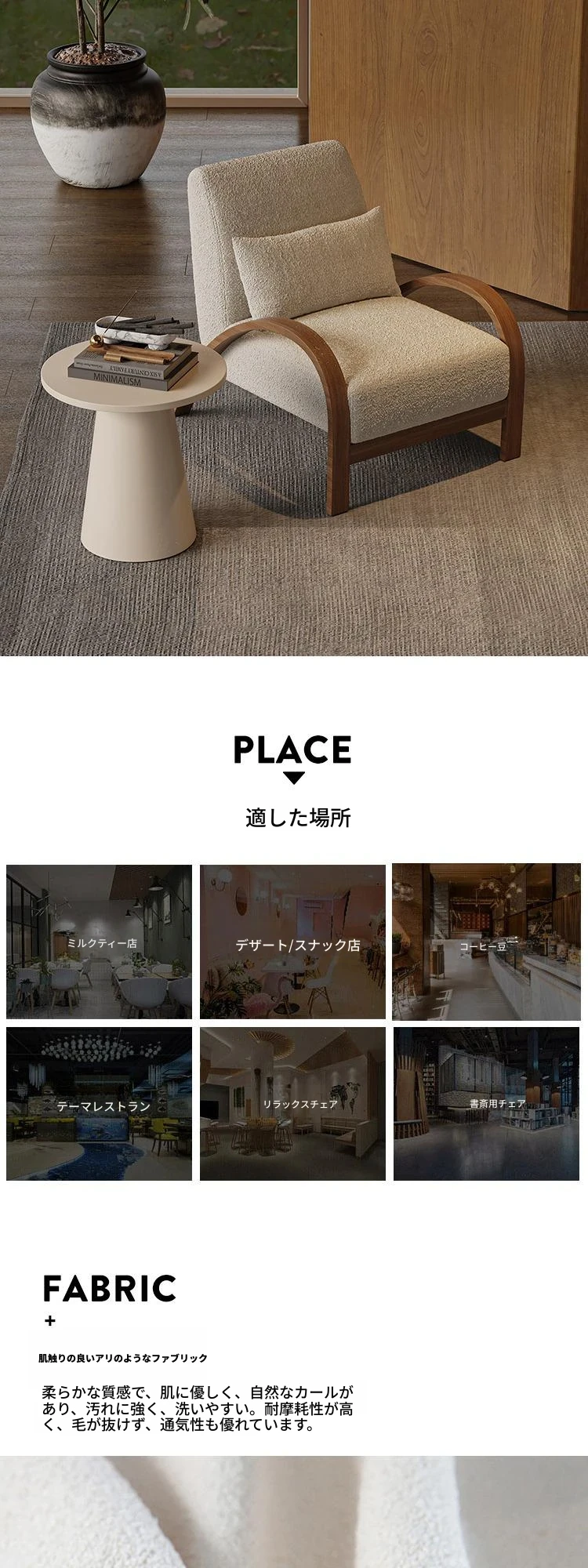 一人用ソファチェア【ミルクホワイト 羊毛フリース - 木目転写】