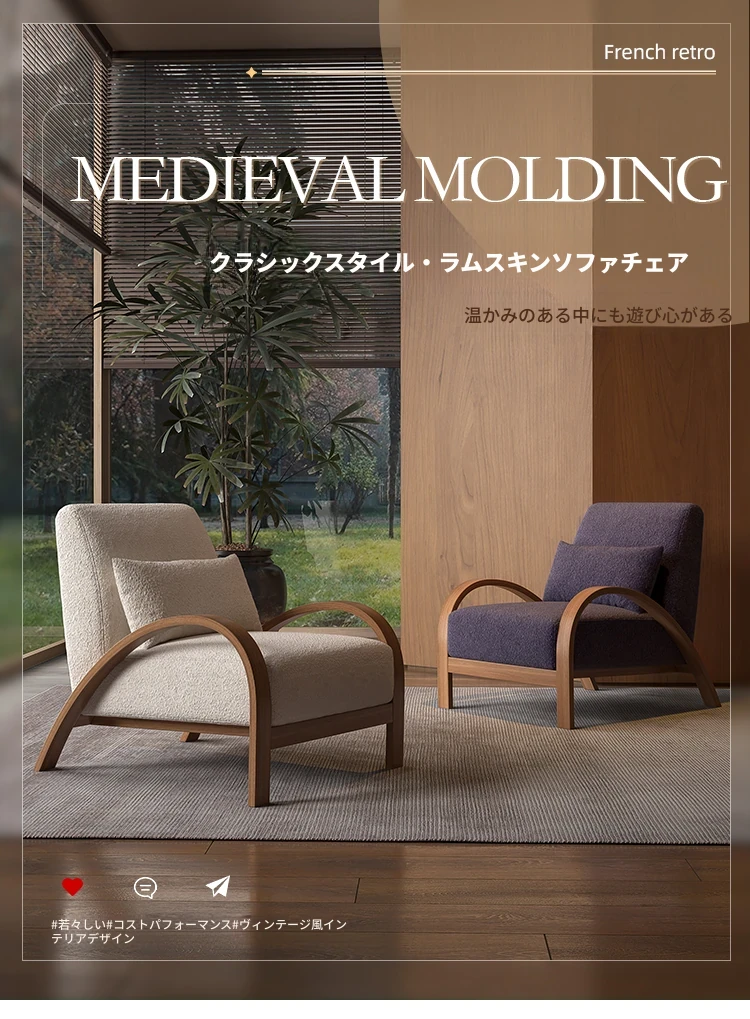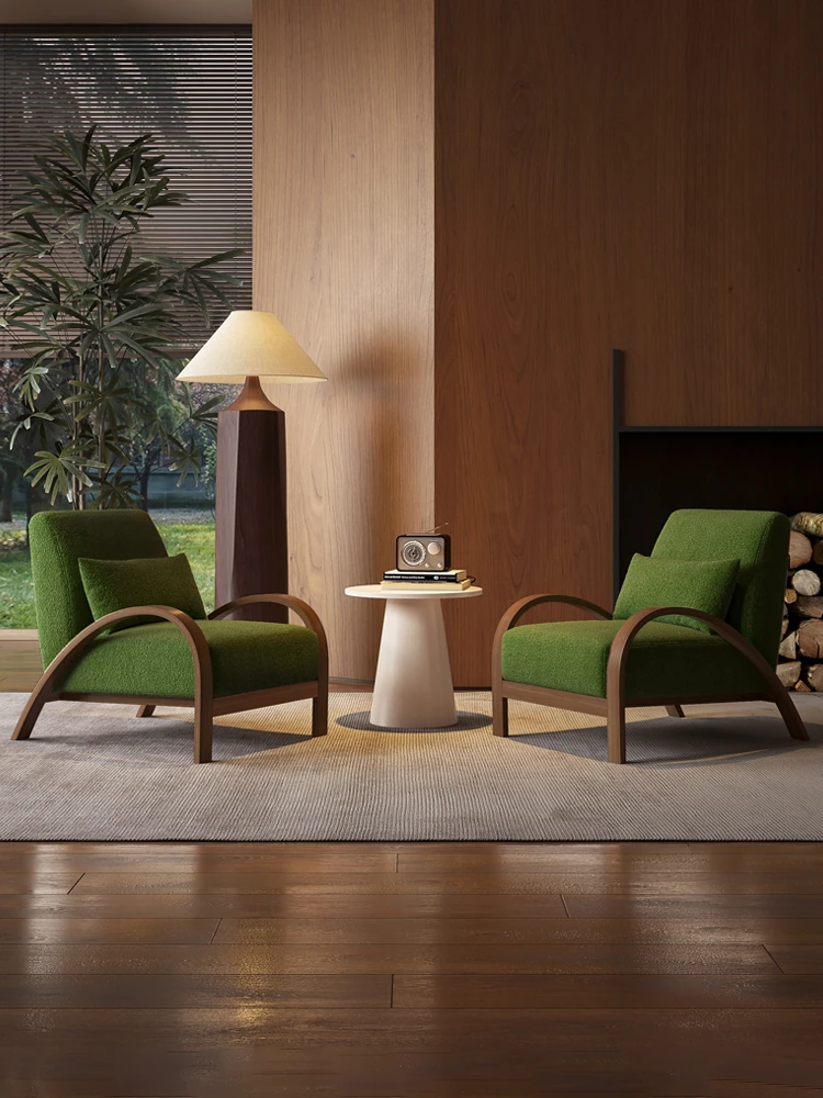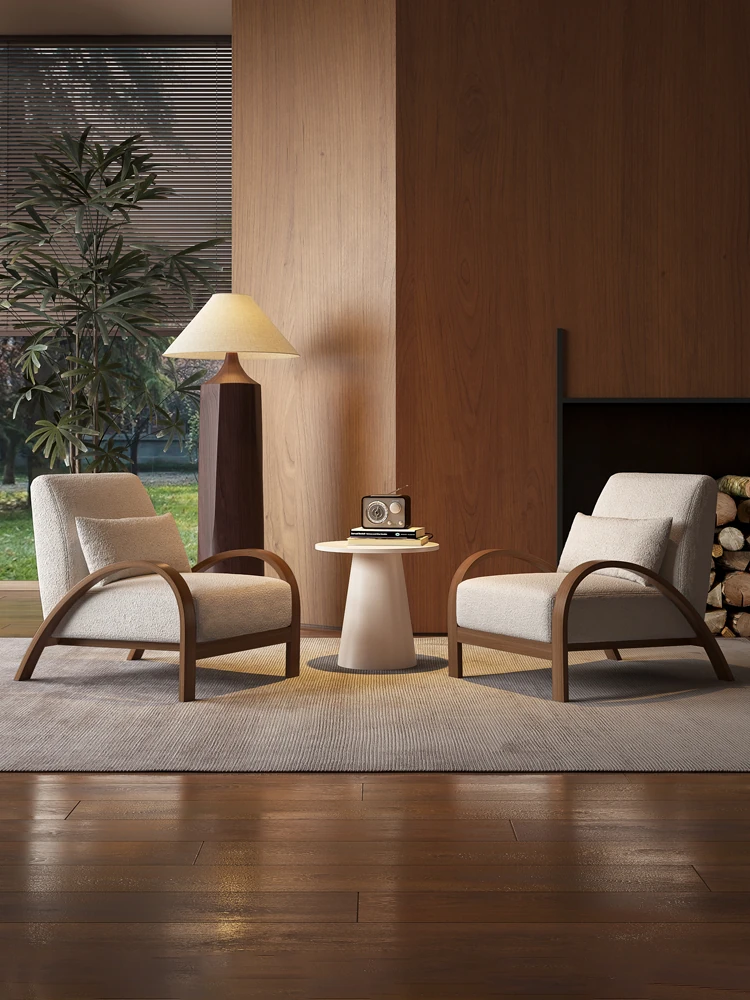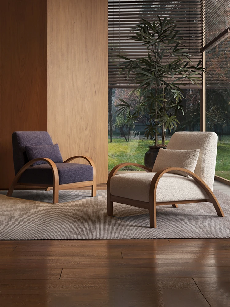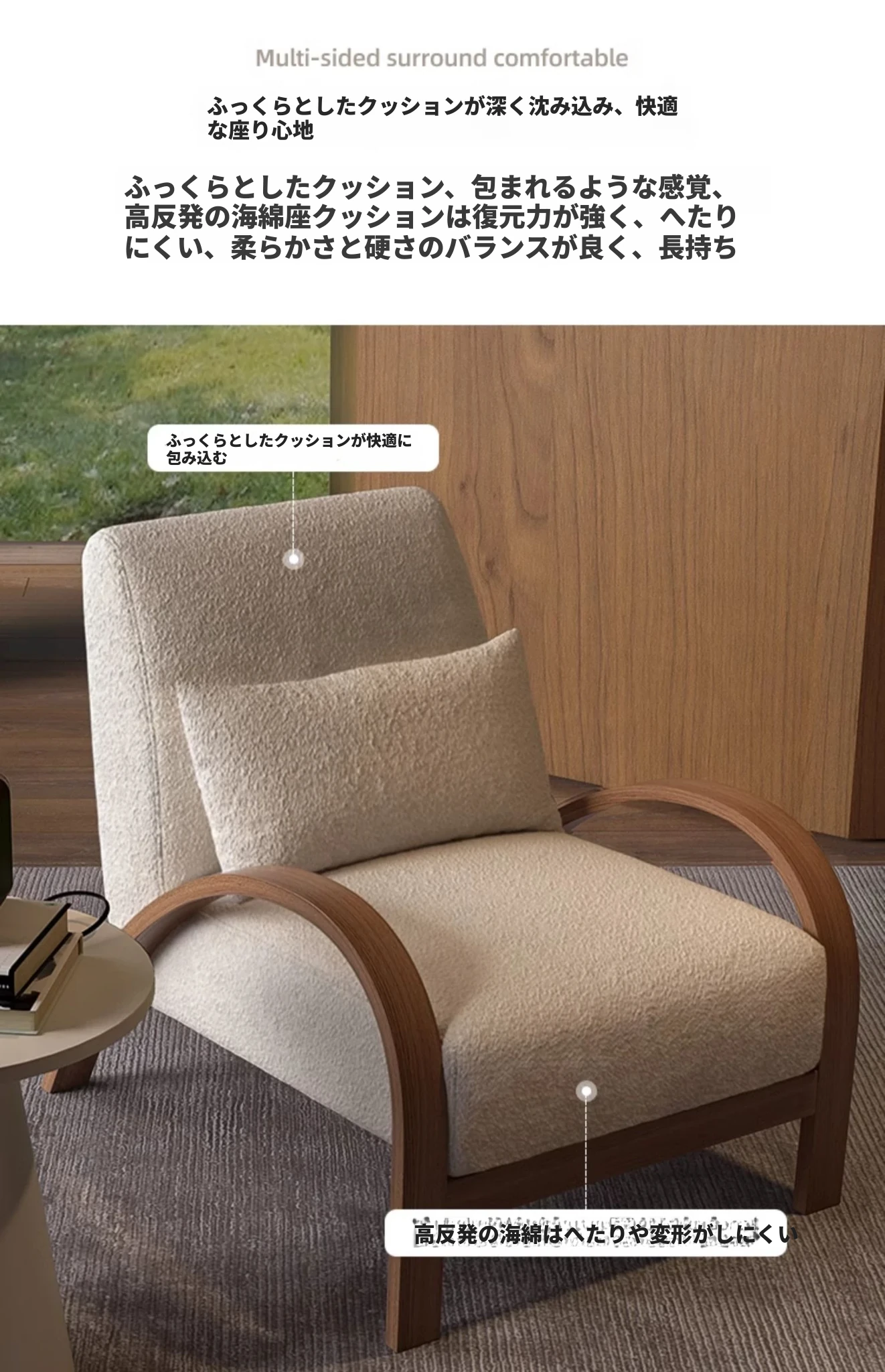 侘寂風シングルソファチェア - 中古のリビングルームやホテルの休憩スペースに最適!接客や打ち合わせ、カフェでのリラックスタイムにぴったりのデザイン。おしゃれで落ち着いた雰囲気を演出する、理想的な家具セットです!