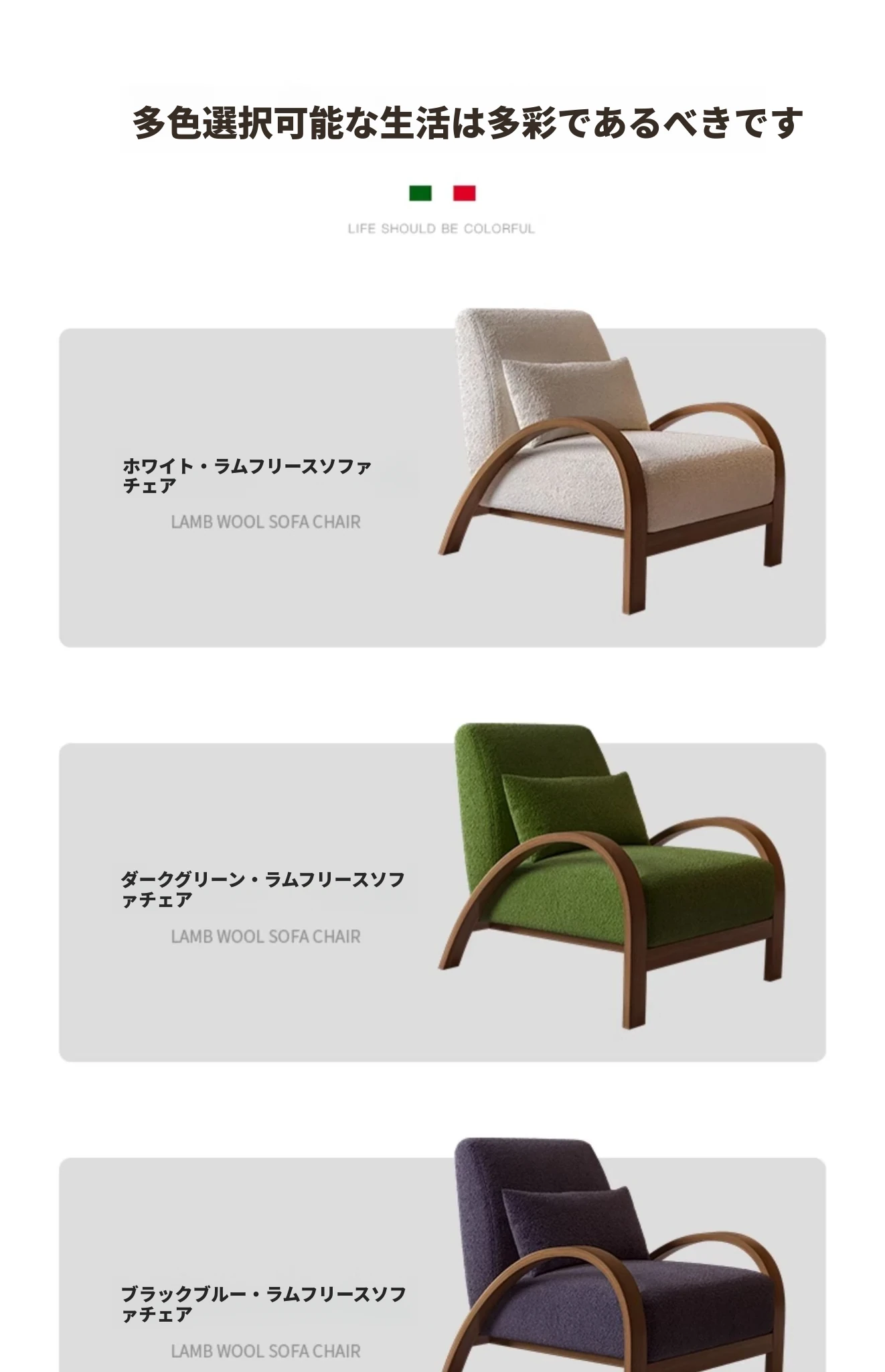 白色-ソファチェア【ラムフリース-金属木目転写】