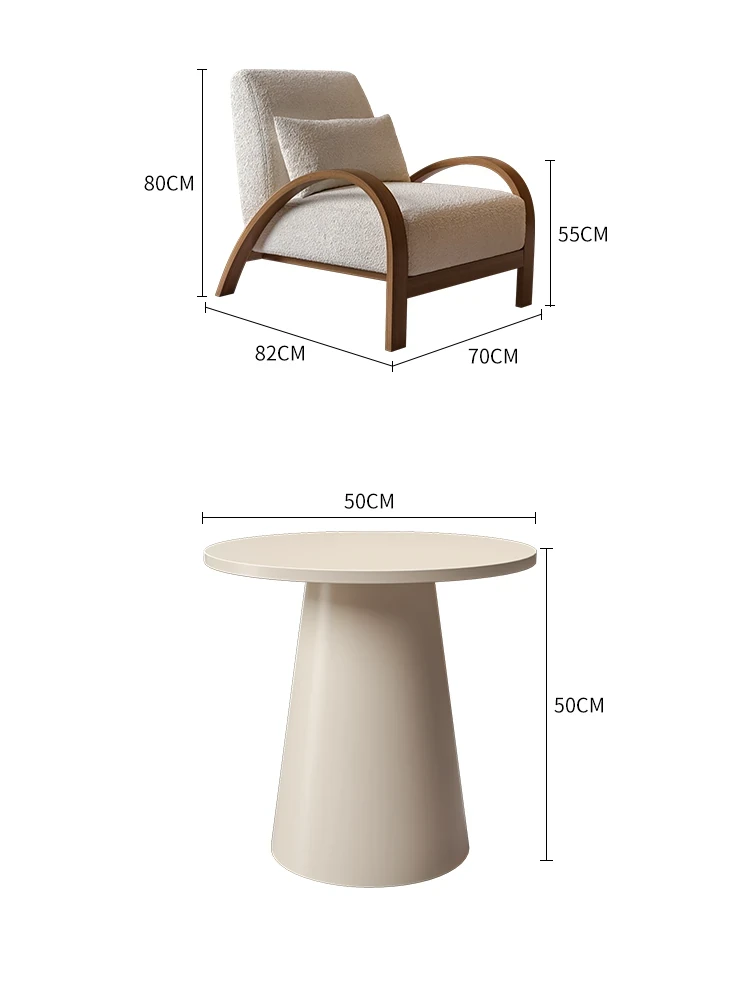 【セット: 白色 】2脚のソファチェア+サイドテーブル直径50cm