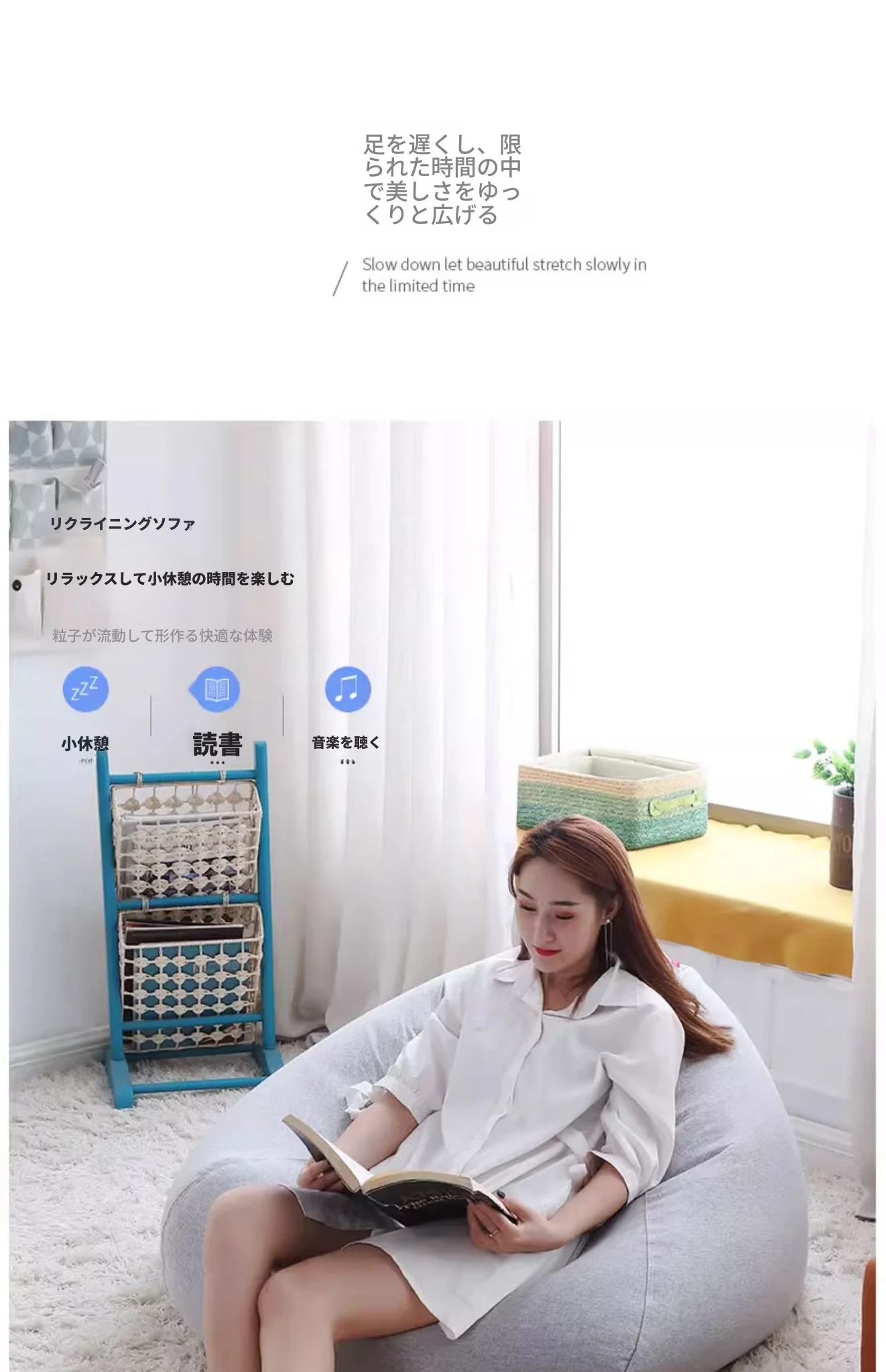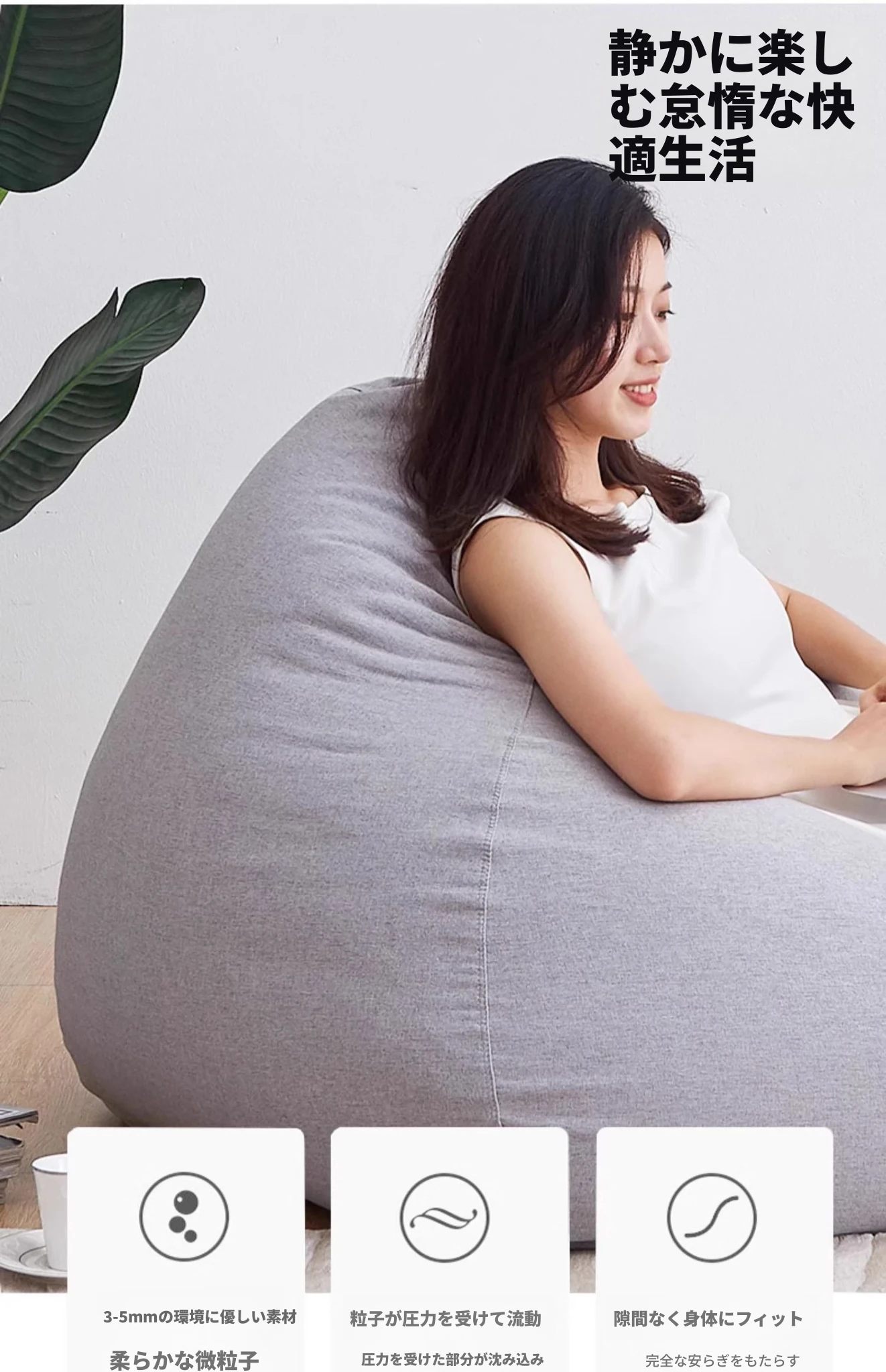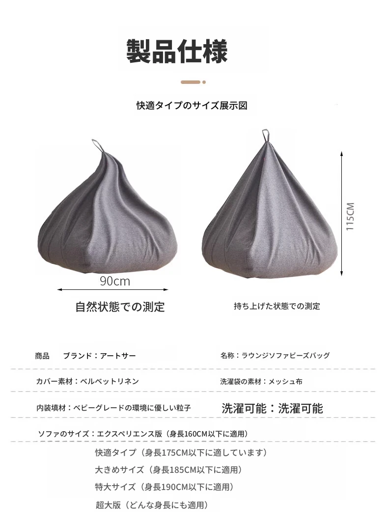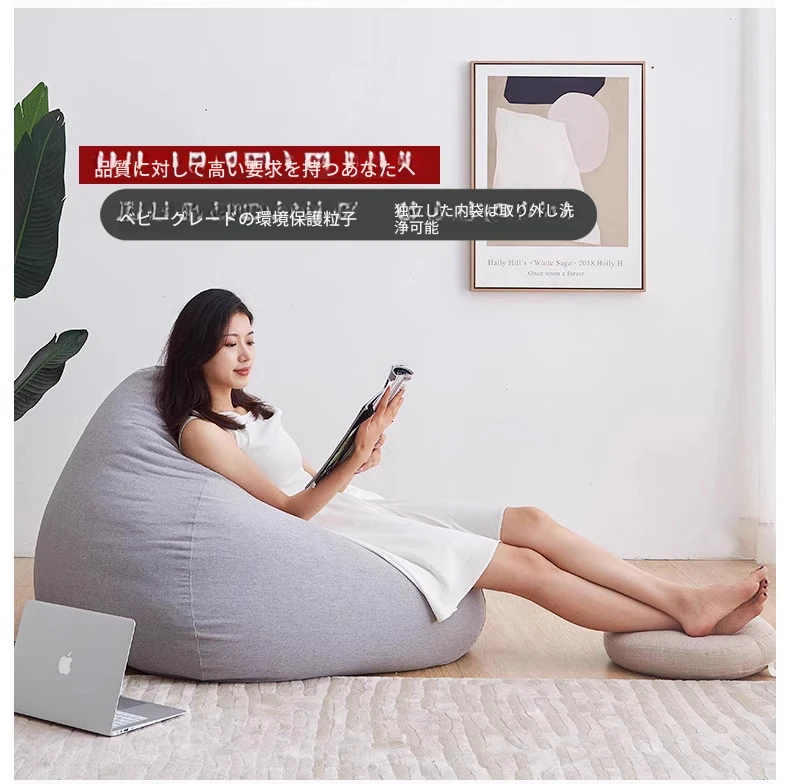 アヤイサのリラックスソファ、EPP製の洗える豆袋型!一人用のコンパクトデザインで、寝室やバルコニー、畳の上でも快適にくつろげます。あなたのスペースにぴったりの癒しのアイテム!