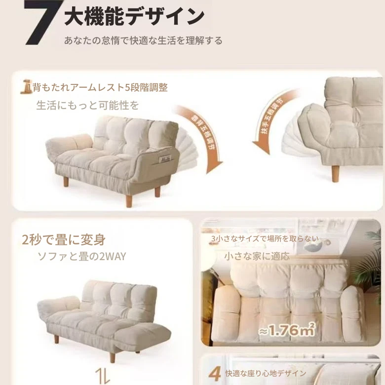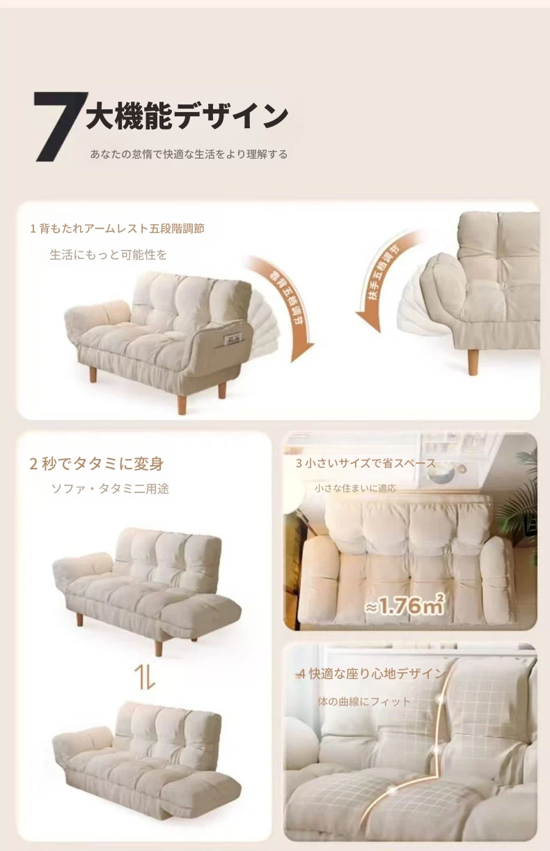 新作!雅艺莎の和風ダブル畳ソファベッド - 快適なリラックス空間を提供する窓辺のサロン、フロアやバルコニーにぴったりの楽々ソファ!