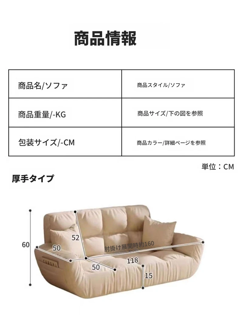 【厚手タイプ・脚付き】アイボリー+クッション2個付き
