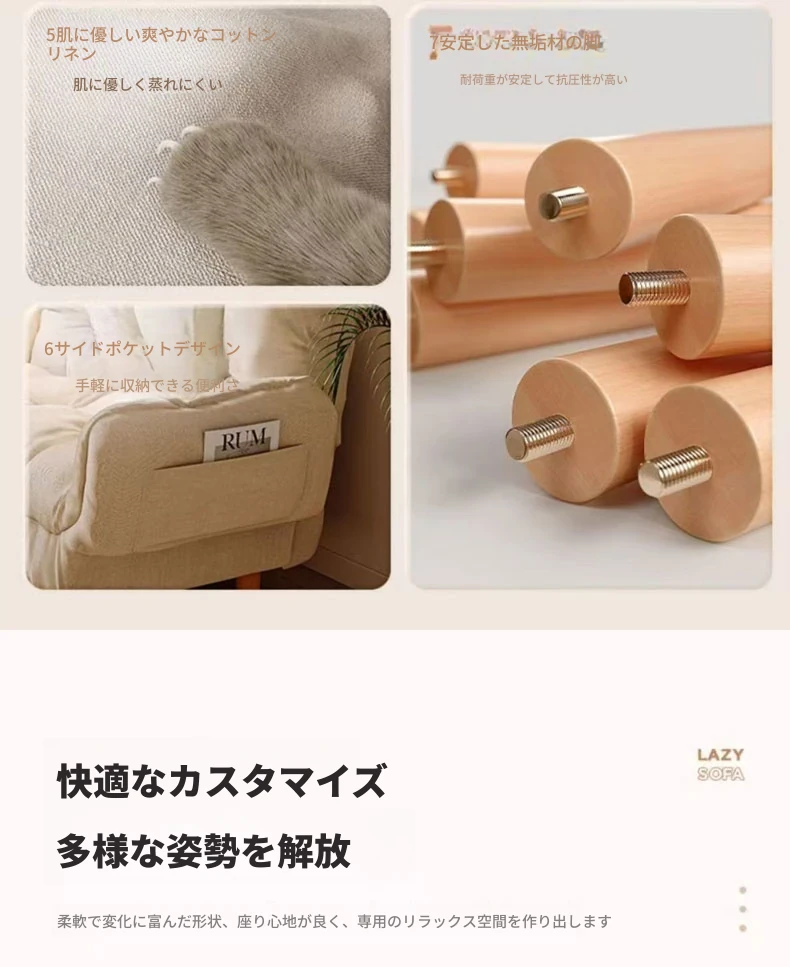 【スタンダードタイプ・脚付き】アイボリー+クッション2個付き